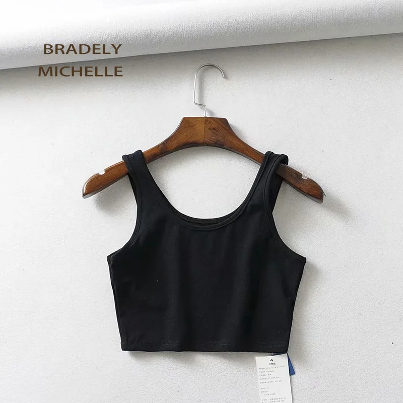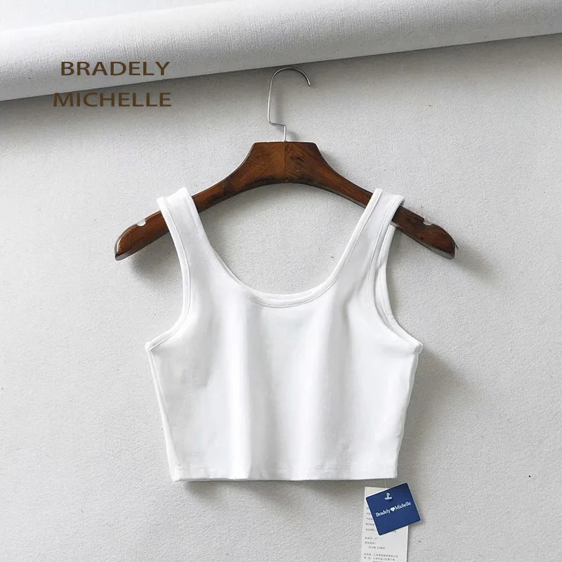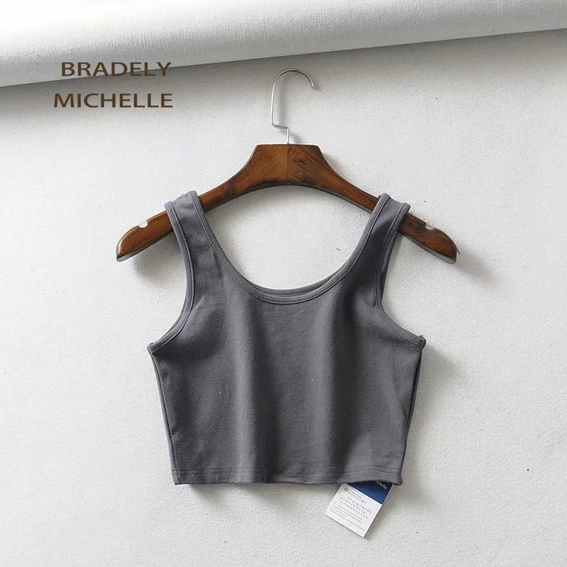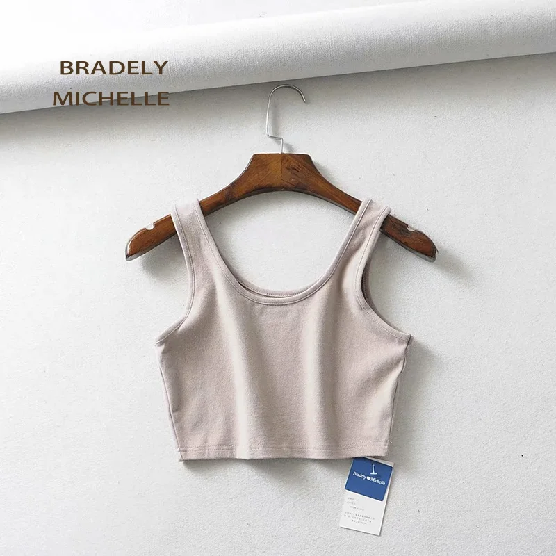 Женский короткий топ из хлопка, с U-образным вырезом, без рукавов