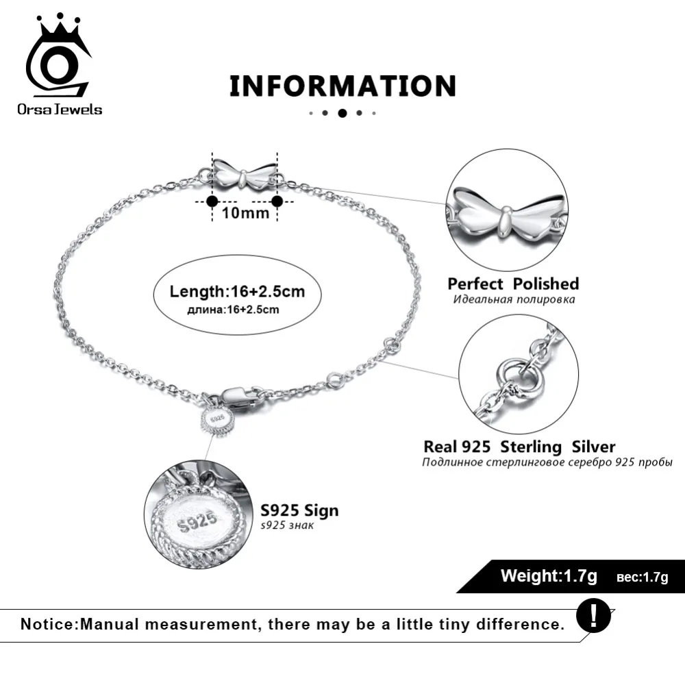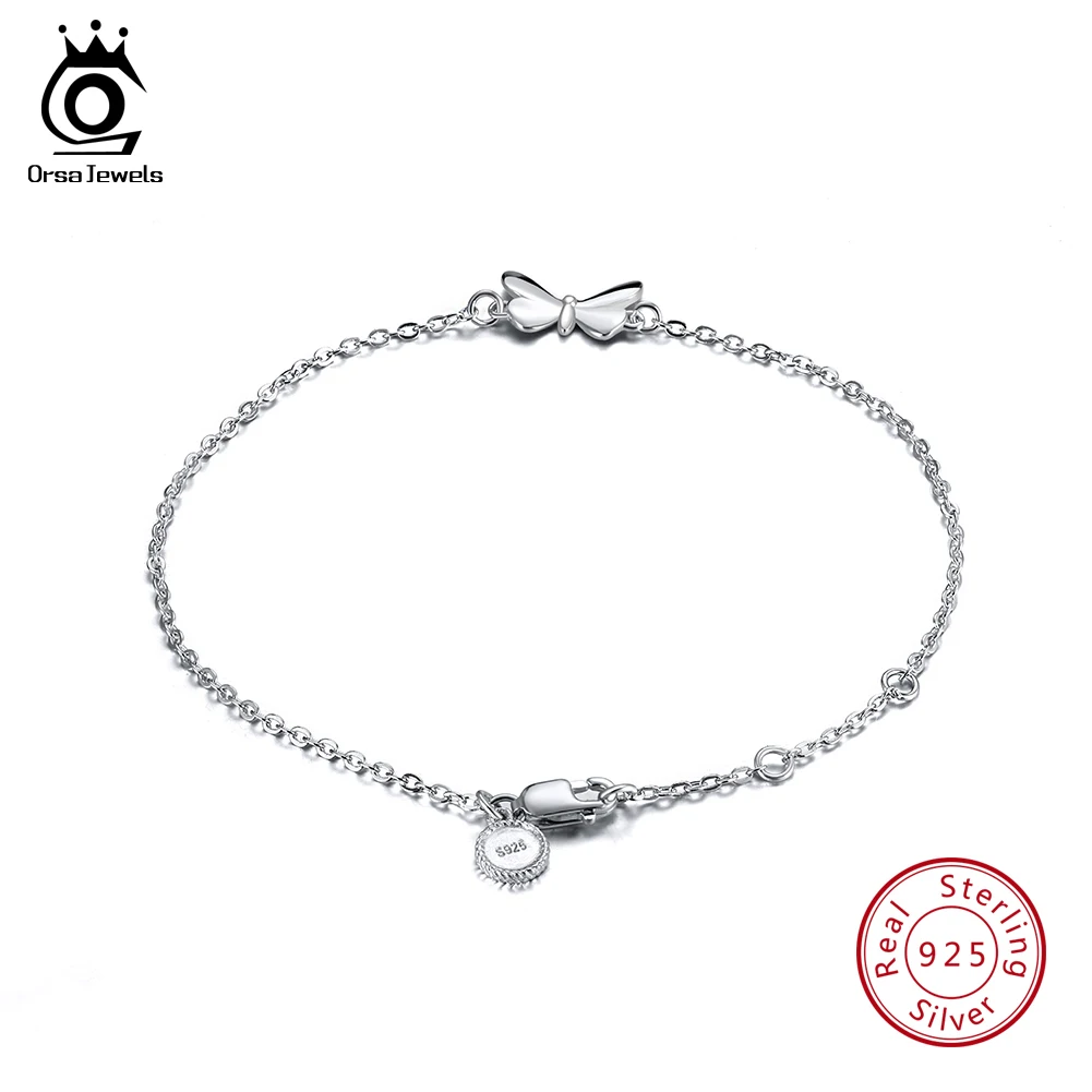 ORSA JEWELS Настоящее 925 стерлингового серебра браслеты из нержавеющей стали для женщин с маленькой бабочкой верхняя часть 16 см серебряный браслет женский ювелирные изделия OSB22