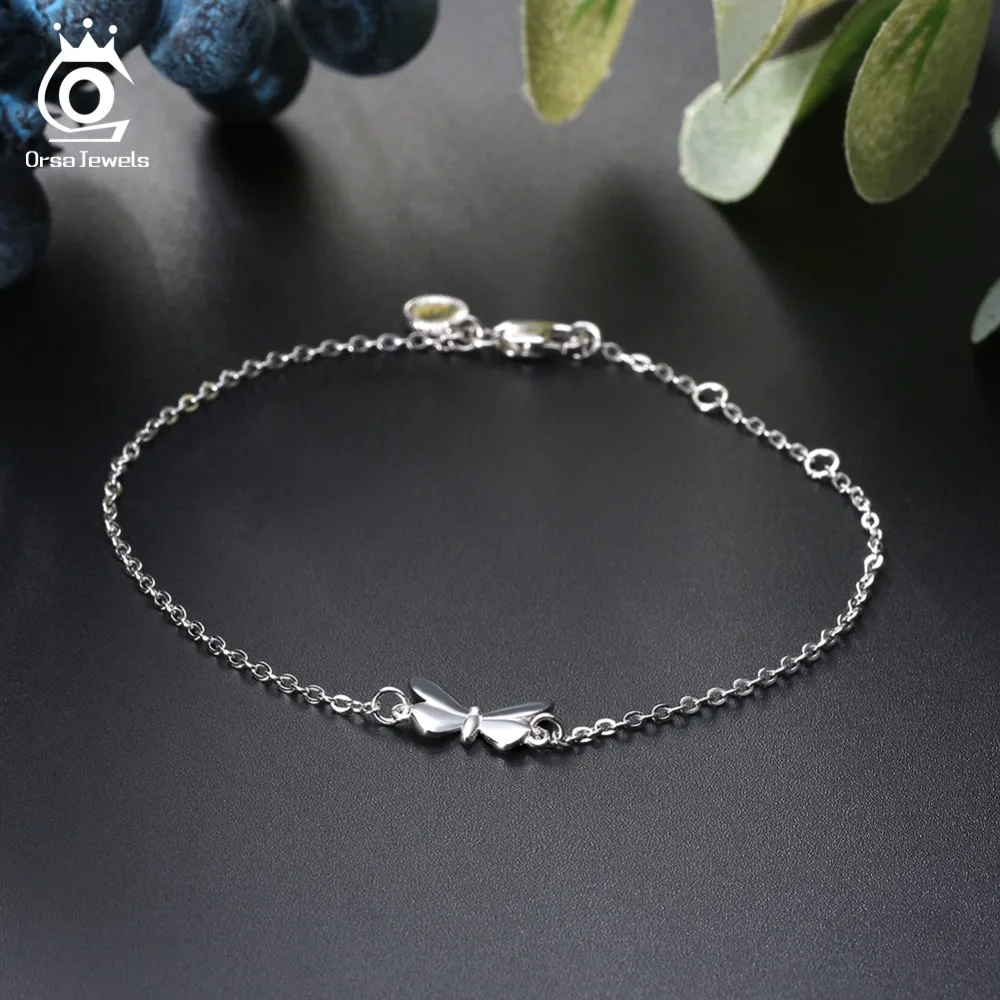 ORSA JEWELS Настоящее серебро 925 пробы браслеты для женщин с маленькой бабочкой 16 см длинный серебряный браслет женские ювелирные изделия OSB22