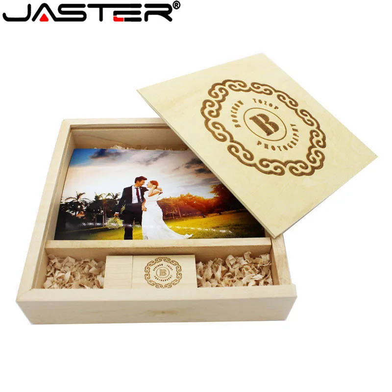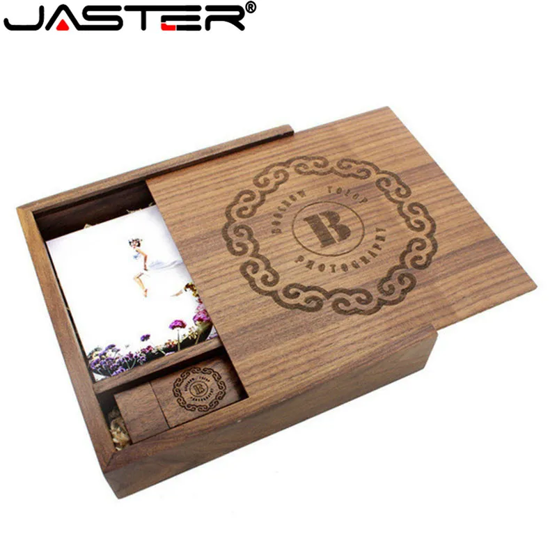 Флэш-накопитель JASTER (1 шт. с бесплатным логотипом), уникальный фотоальбом, USB-накопитель из орехового дерева с коробкой, 8 ГБ, 16 ГБ, 32 ГБ, 64 ГБ (170*170*35 мм)