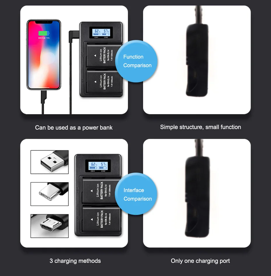 EN-EL14 EN EL14 EN-EL14a батарея + зарядное устройство с ЖК-дисплее...