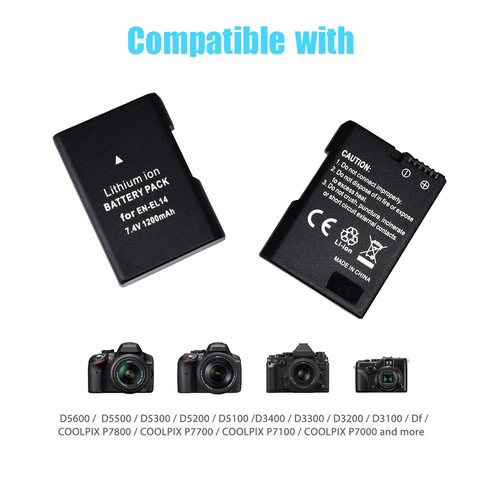 EN-EL14 EN-EL14a ENEL14 EL14 1200 мАч Сменный аккумулятор для Nikon D3100, D3200, D3300, D3400, D5100, D5200, D5300, D5500, DF, Coolpix P7000, P7100, P7700, P7800 DSLR камер