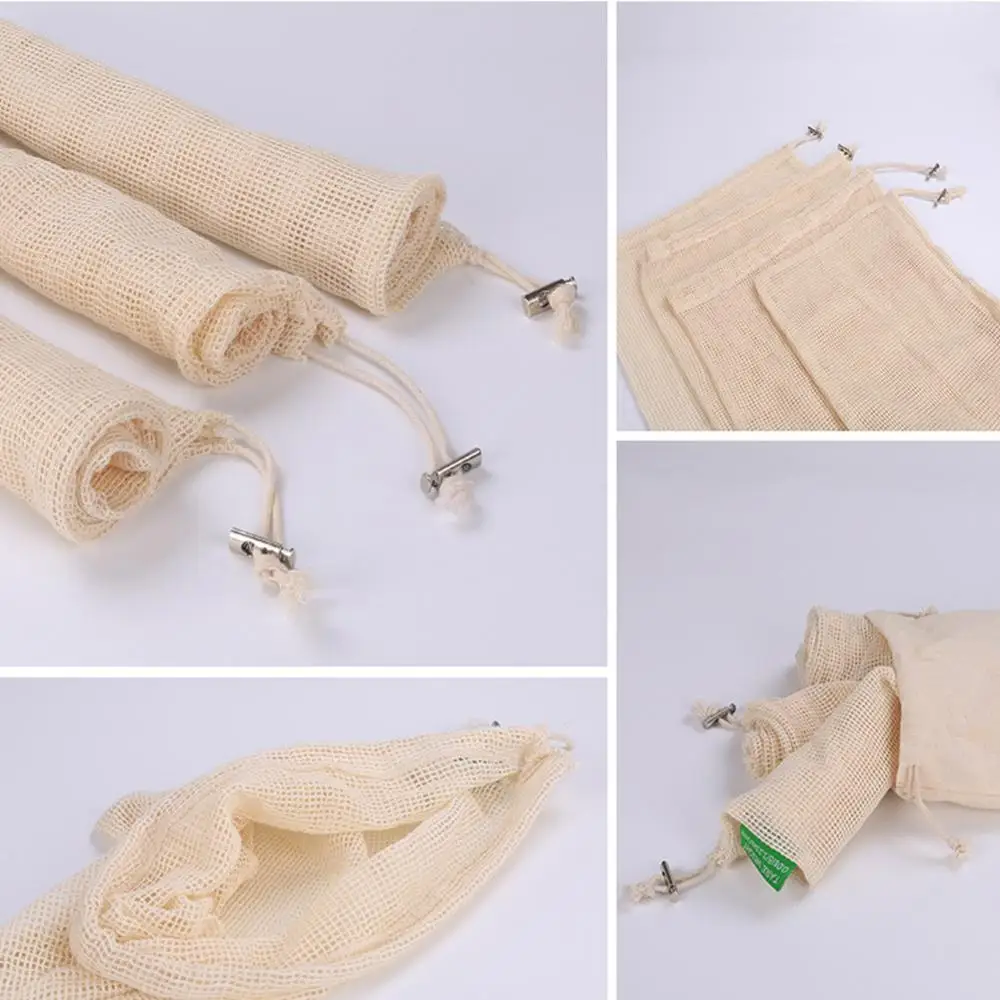Многоразовые сумки для овощей, Хлопковая сумка для покупок, Сетчатая Сумка на шнурке, моющаяся кухонная сумка для домашнего хранения фруктов, сетчатые сумки для покупок