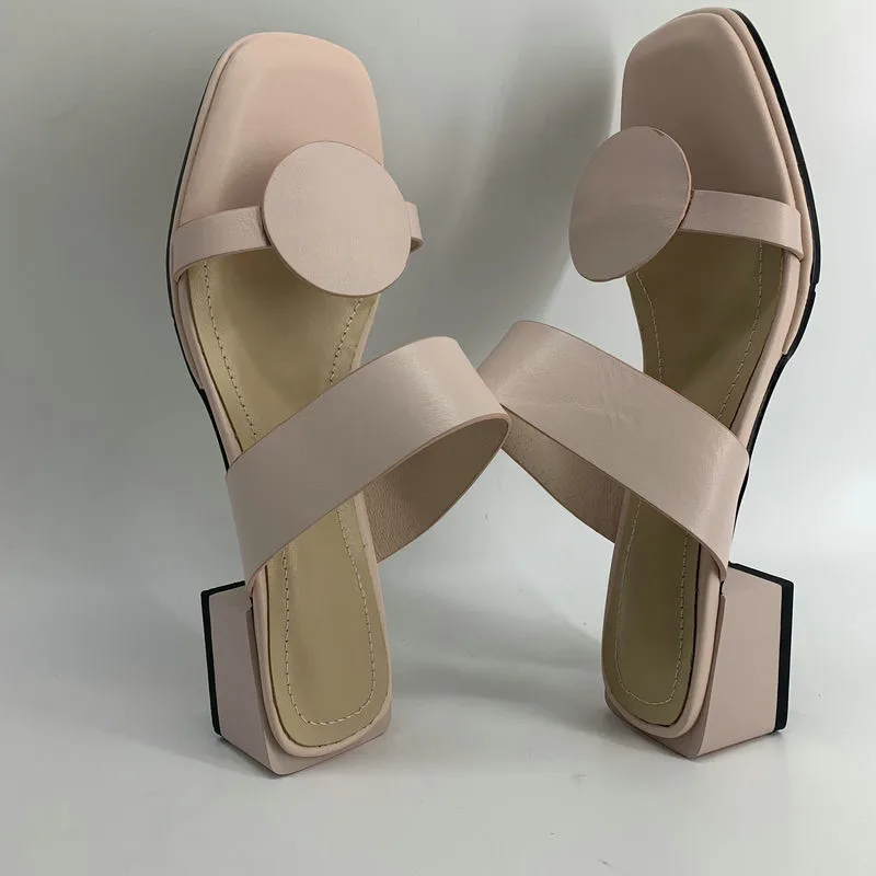 Женские шлепанцы из искусственной кожи, повседневные туфли с квадратным каблуком 4,2 см, розовые, синие, желтые, 32-48