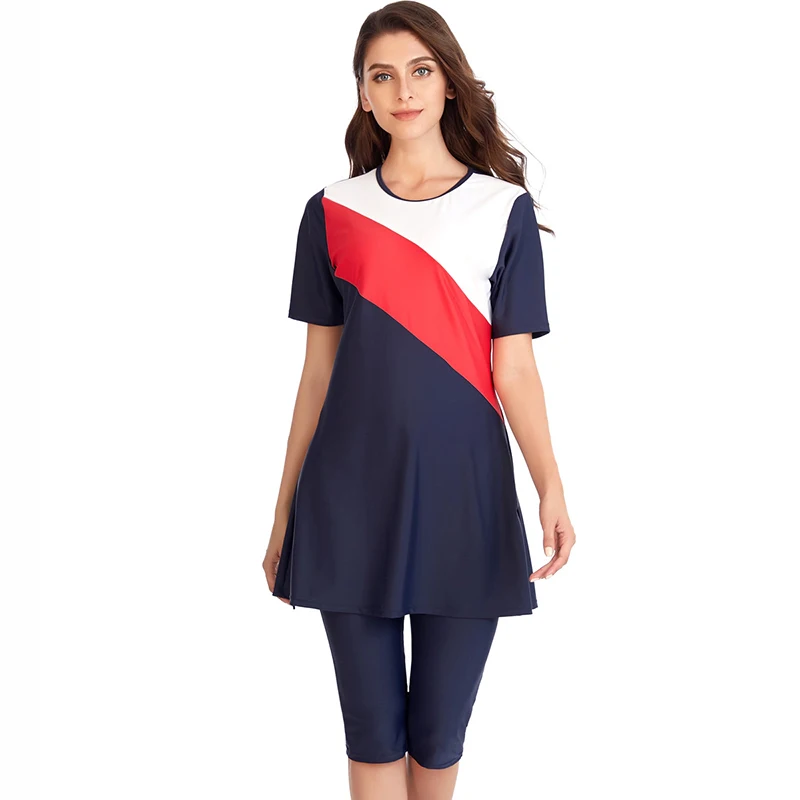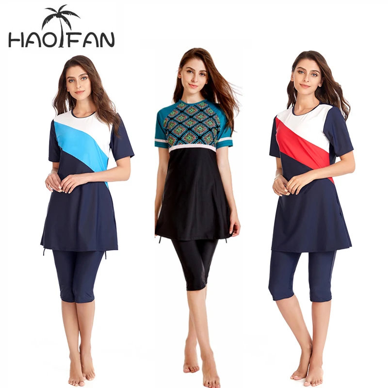 Женский скромный купальник HAOFAN, мусульманский хиджаб с коротким рукавом, S-4XL, 2019