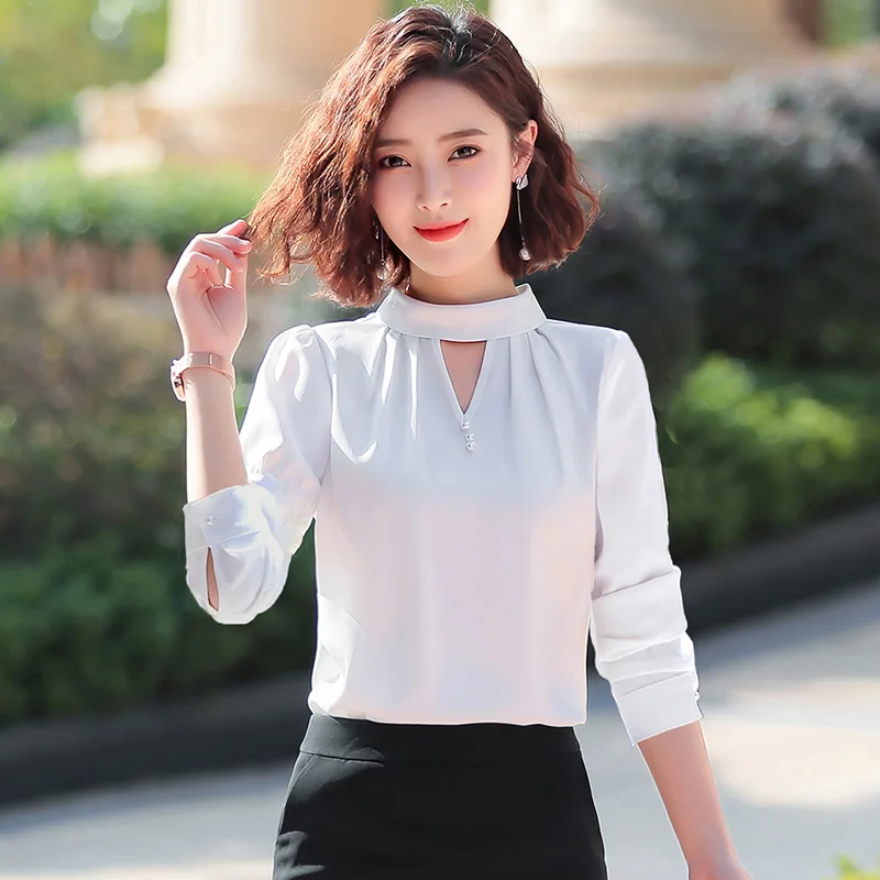 Женская шифоновая блузка с длинным рукавом, V-образным вырезом