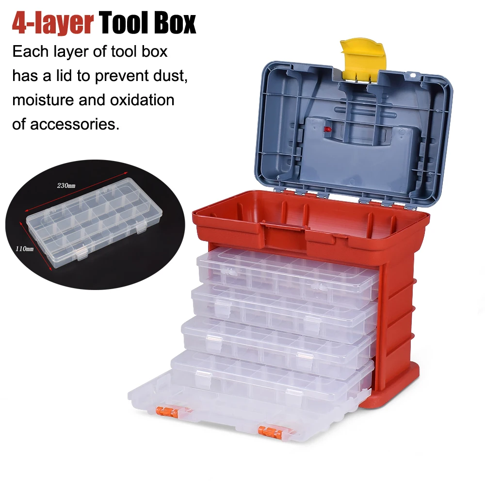 Ящик для инструментов NEWACALOX, 4 слоя, для рыболовных снастей, переносной кейс для инструмента винтов, пластиковый ящик для хранения с фиксирующей ручкой