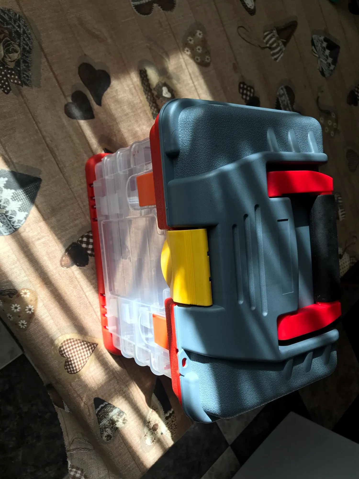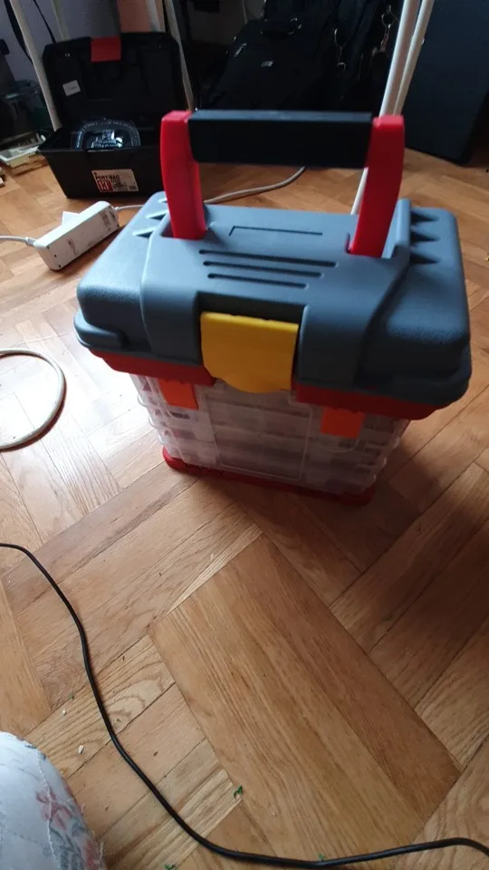 Товар упакован был по рабоче-крестянски, не фирменная упаковка, но принесли быстро. На фото ящик смотрится как рыбацкий, типа сидеть на нем можно. На самом деле, на нем может сидеть ребенок 5 -8 лет. Сам корпус сделан более-менее прочно и надежно. А вот вставные ящики хлипкие. И самое сопливое в конструкции, то, что должно быть самым надежным - защелки. Надеюсь, конечно, что они послужат. Но в общем печально, что сэкономили на самом главном? При такой цене этого пластикового ящика, сами коробки пожидили сделать хорошо. Причем перегородки крепко сидят, в отличие от большинства бюджетных ящиков. Я долго искал какие-то похожие аналоги подешевле или покрупнее, но увы. Ничего дельного не нашел. В Максидоме в Питере есть коробки больше по размеру и солиднее по виду, за 900 рублей. Но они не переносные и по другому реализованы секции, так удобно не закрываются, как здесь. Поэтому решил таки переплатить. Но, немного разочарован.