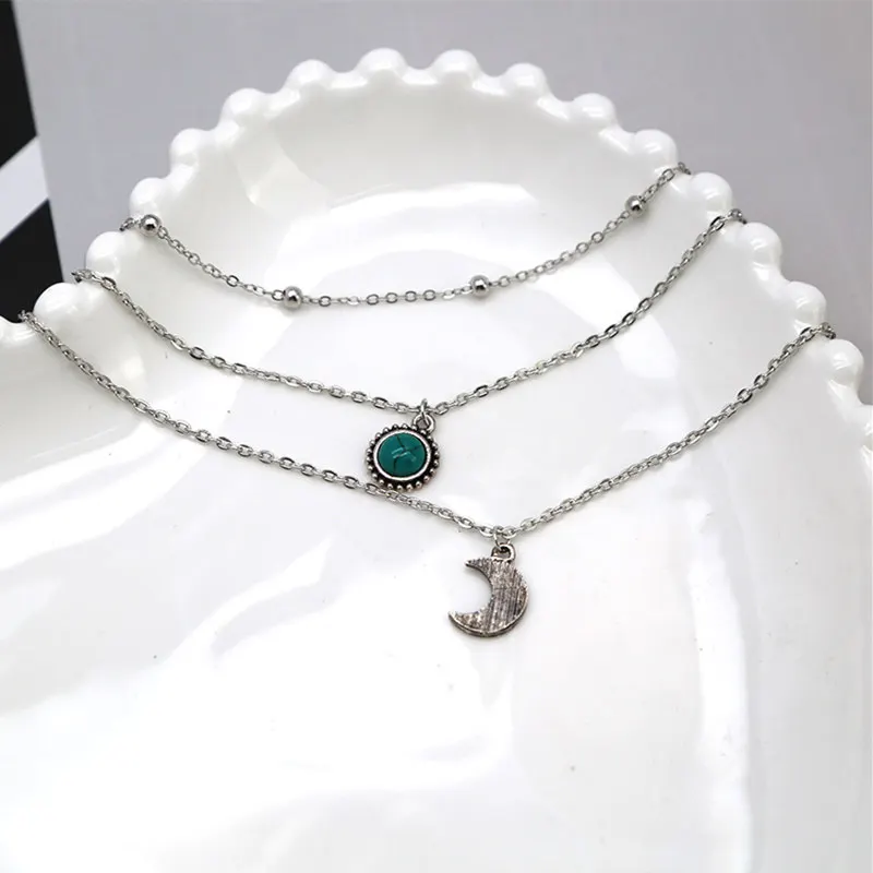 Богемные ювелирные изделия 2022 новые модные популярные ювелирные изделия Луна трехслойное многослойное ожерелье женские ювелирные изделия оптовая продажа Летние подарки