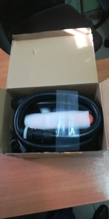 Насос пришел в картонной коробке, доставка до дома, отлично. На насосе видимых повреждений нет, в комплекте шланг и переходники. Пока не проверял, проверю добавлю отзыв. Пока только положительные эмоции доставка за неделю до дома.