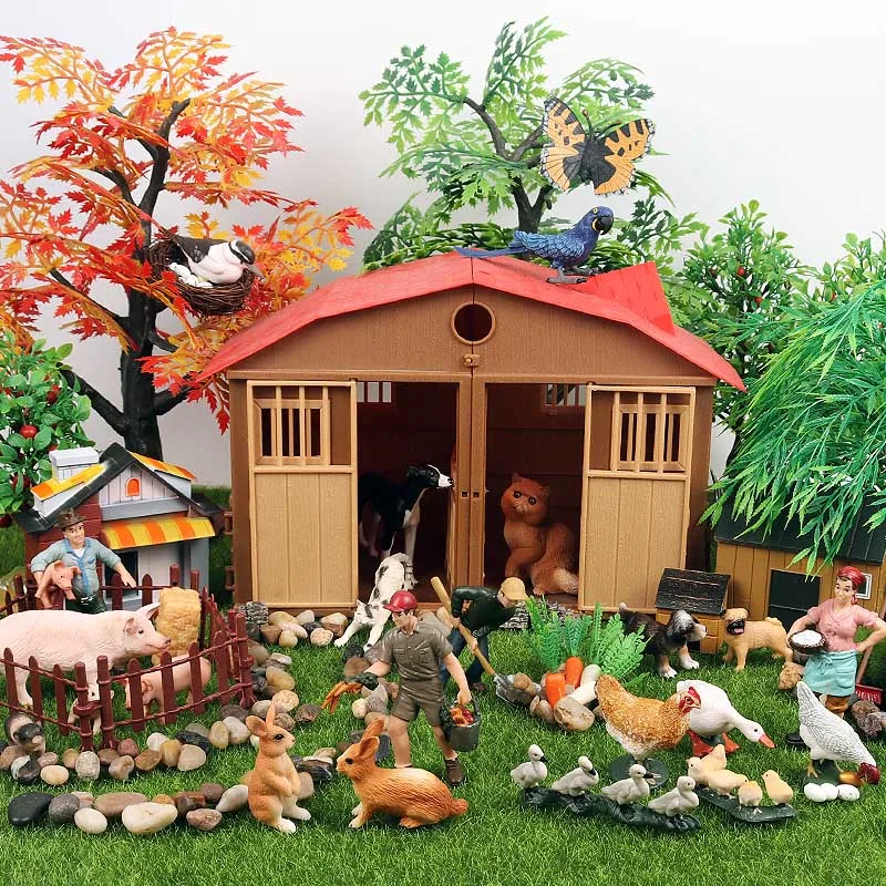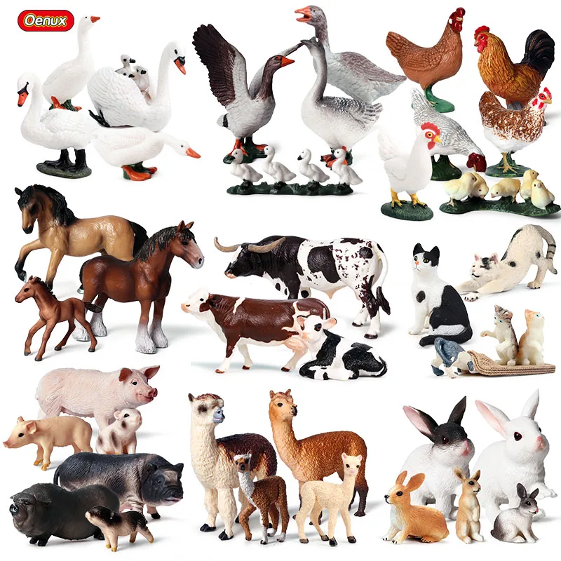 Особенности: Oenux ферма семейная модель фигурки фермер корова курица лошадь свинья птица статуэтки животных миниатюрная прекрасная образовательная детская игрушка