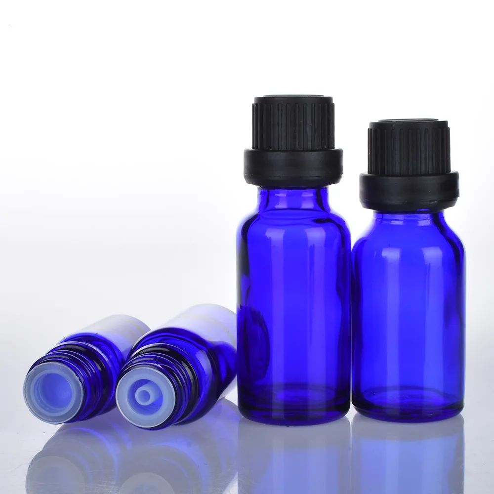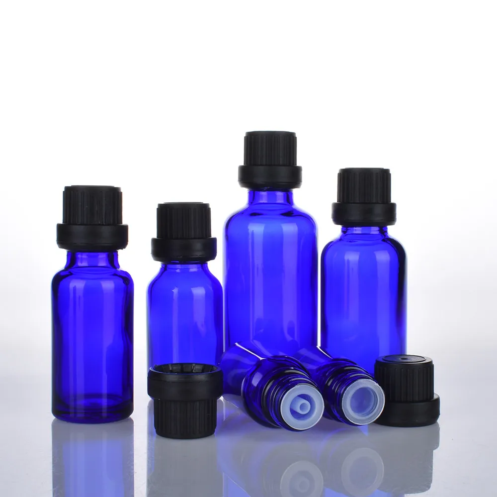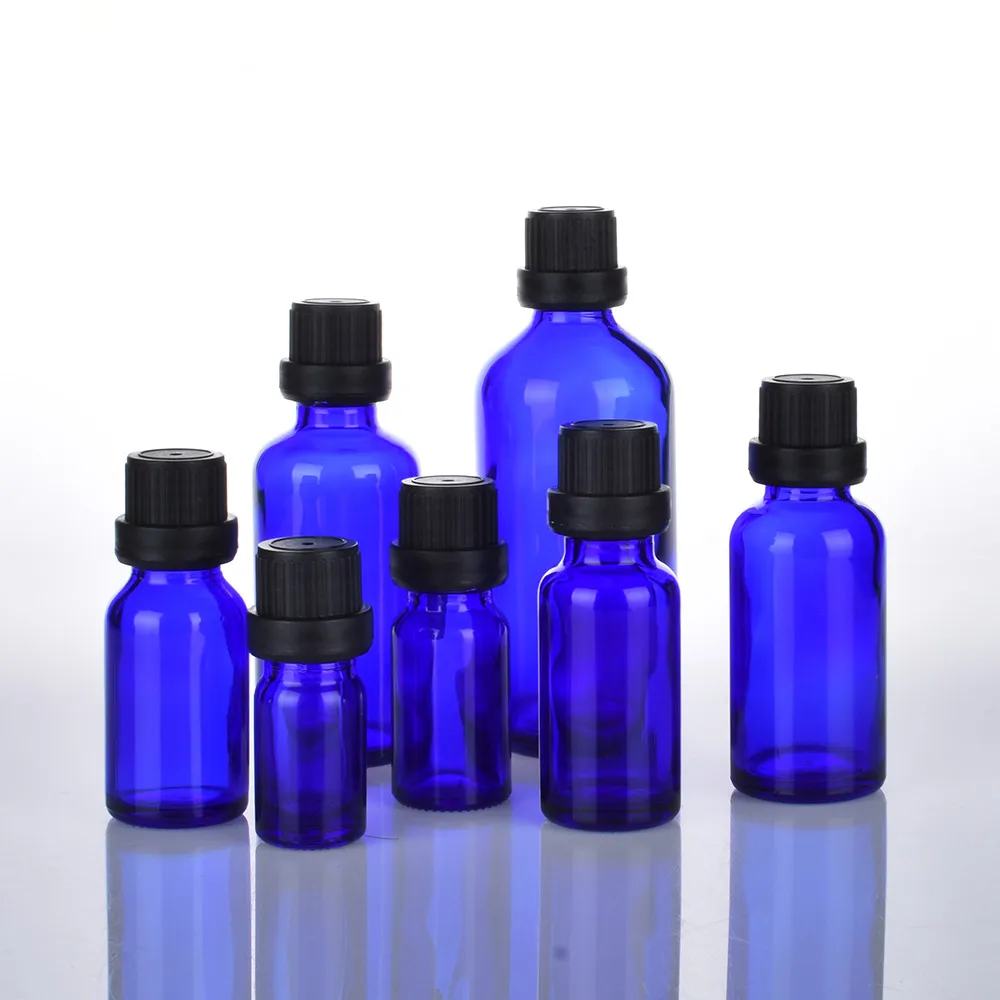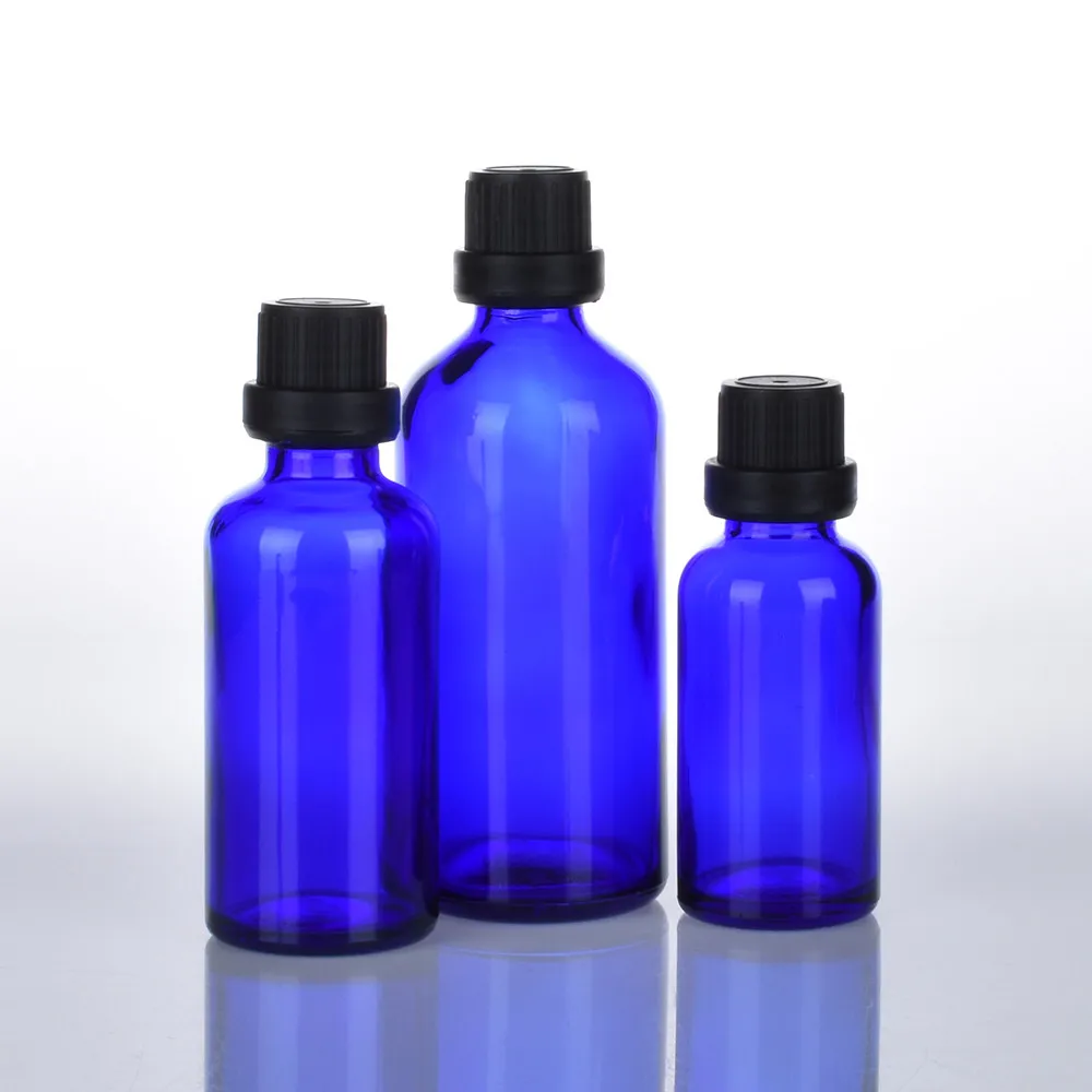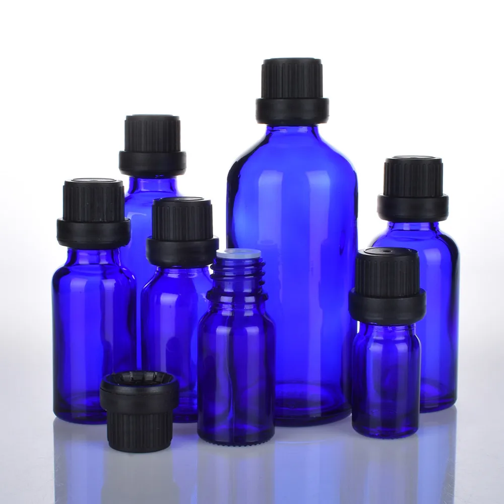 200 шт.лот 51015203050100 мл кобальтовые бутылки с эфирным маслом из голубого стекла с редуктором с Европейским флаконом-капельницей, прозрачная крышка