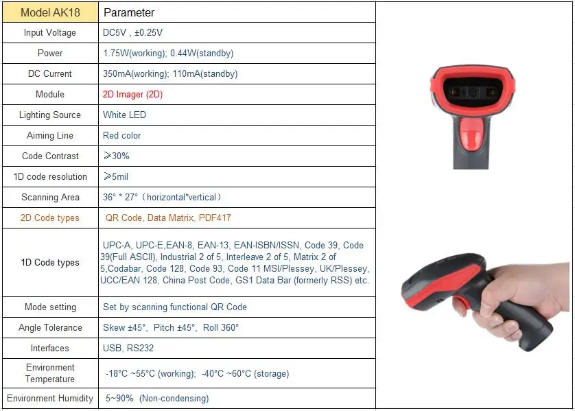 2D сканер штрих-кода USB проводной сканер штрих-кода лазерный автоматический портативный ручной qr-код считыватель AK18 для POS Прямая поставка