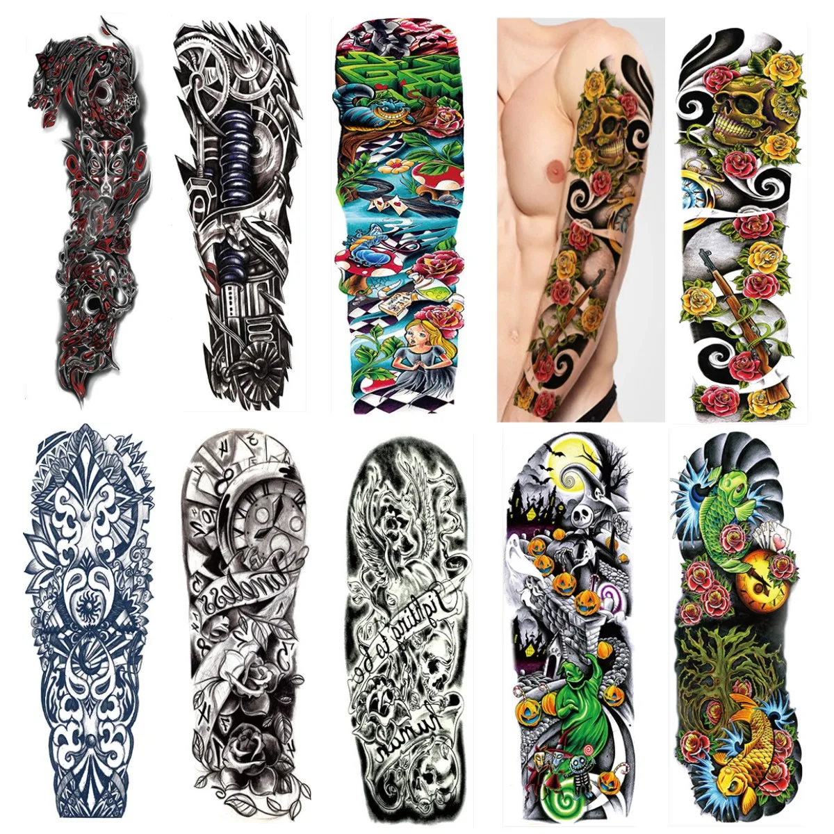 Водонепроницаемые Временные татуировки на полную руку, 3 шт., большой череп, механические татуировки на руку, наклейки, крутой мужской, женский боди-арт, краски