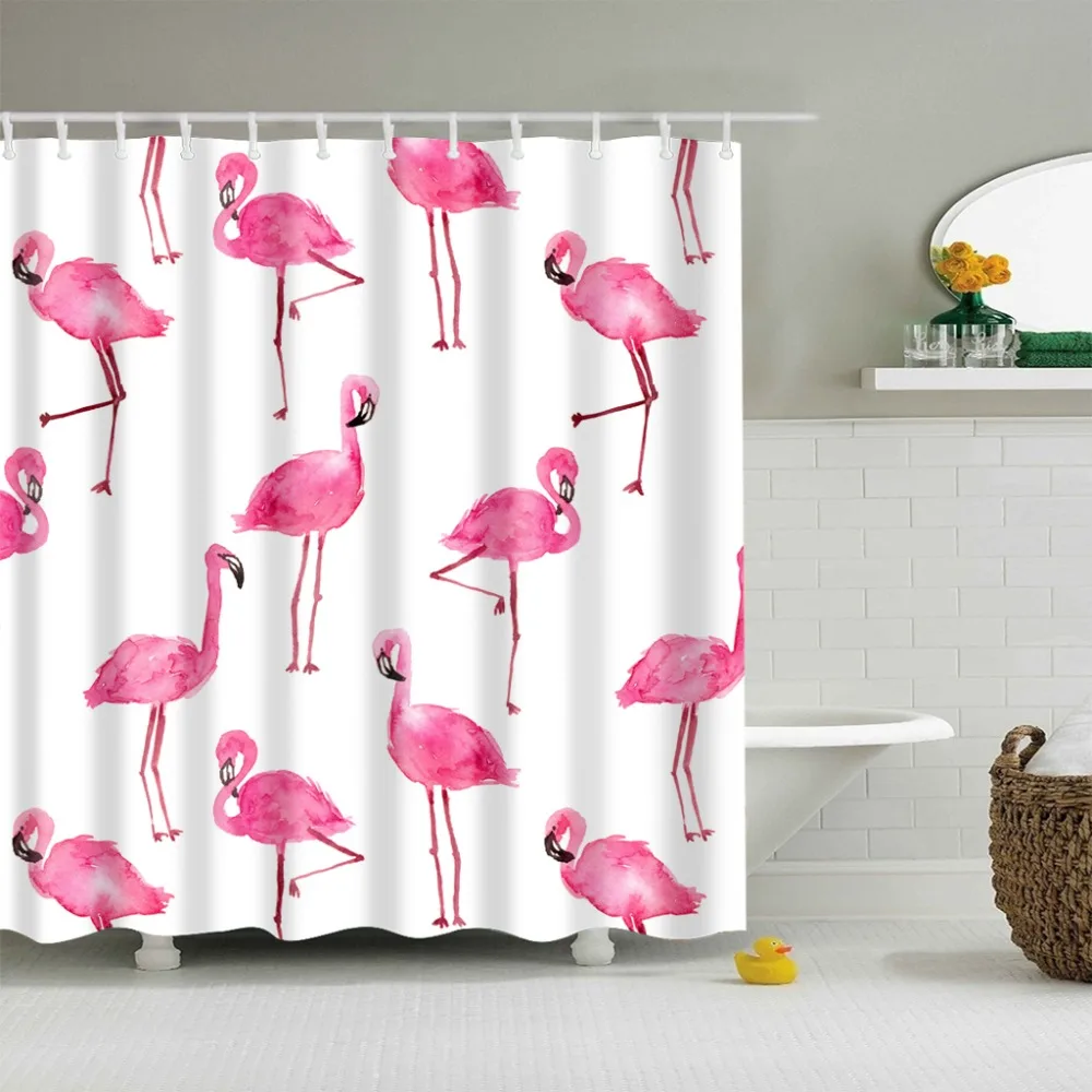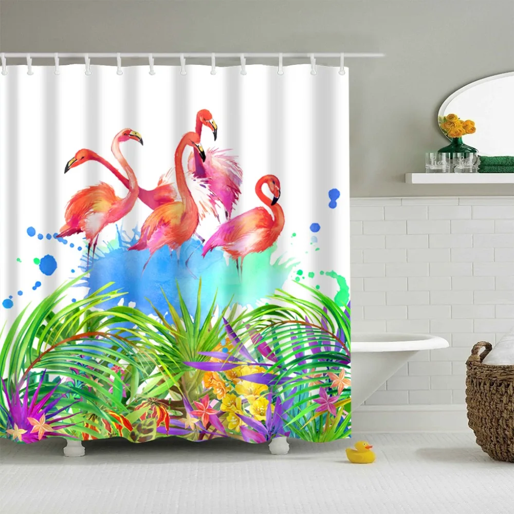 Водонепроницаемая занавеска для душа в ванную комнату, непромокаемая Полиэстеровая занавеска с тропическими животными, фламинго, с крючками