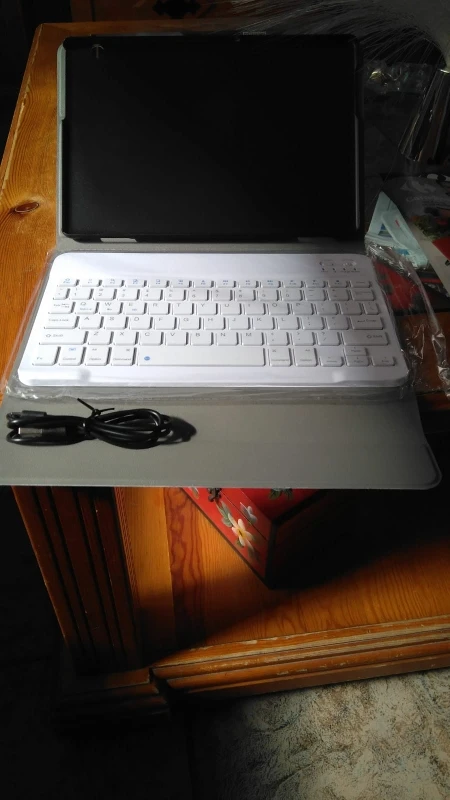 Заказ оформлен 15.10, получен 25.11. Вроде нормально, но покинул Китай только после открытия спора (практически чере месяц после отправки). Трек отслеживался. Упаковано плохо, поэтому одна коробка помята сильно, до дыры. Т.к. заказывала детям в подарок это большой минус продавцу! Проверили с телефоном, клавиатуры работают, прикольно! Набираешь на клавиатуре, на телефоне набирается смс. Задумка для планшета хорошая!!! Крепится клавиатура к чехлу на магнит. Обращайте внимание, на клавиатуре только английские буквы. Я просила продавца положить русские , они на липучке ( вложены отдельно). Если бы не помятые коробки было бы вообще здорово! Но это замечание исключительно продавцу!!!