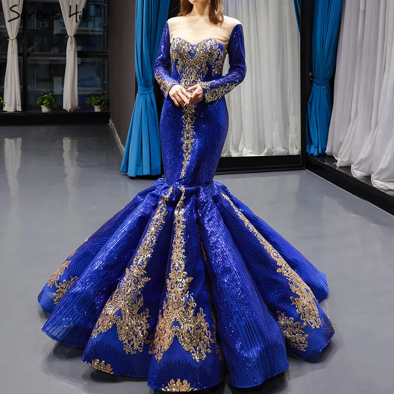 Дубай синий блестками сексуальные свадебные платья 2021 съемные Длинные рукава Роскошные свадебные платья настоящая фотография HM66787 на заказ