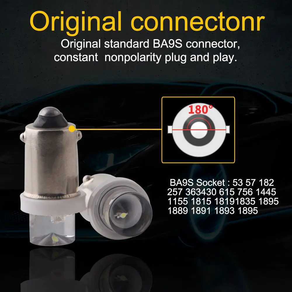> ПрименимоДля большинства автомобилей модель с BA9S 53 57 182 257 363 430 615 756 1445 1155 1815 1819 1895 1889 1891 1893 1895 6253 12814 12929 W6W 2-B миниатюрный байонетный.