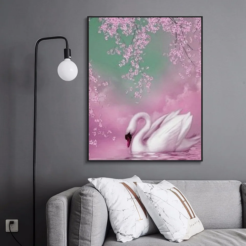 Алмазная живопись 5D "сделай сам", вышивка крестиком, лебеди, алмазная живопись, круглые стразы, алмазная живопись, вышивка, мозаика с животными
