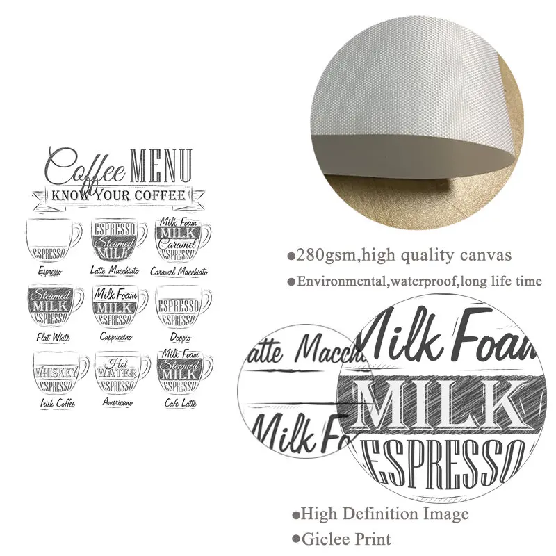 Картина для кофе, меню, скандинавские настенные картины, черно-белые картины на холсте, плакаты для кафе, магазинов, современный декор для гостиной, домашнего декора HD2616