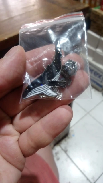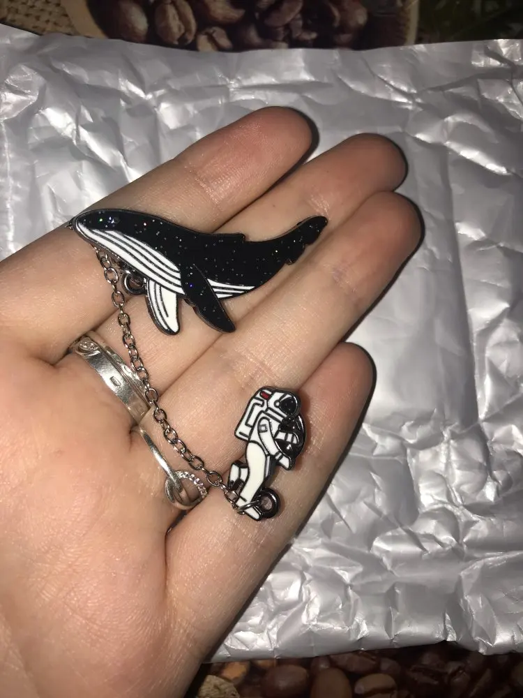 Это. Что-то. Невероятное! Кит с блестками внутри. Смотрится очень красиво. Уже хочется прицепить к своей джинсовке