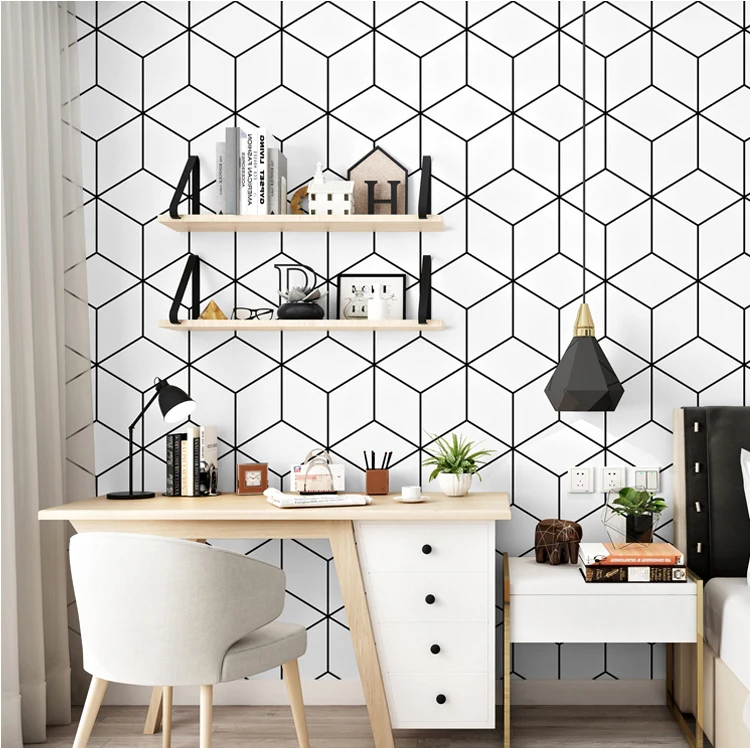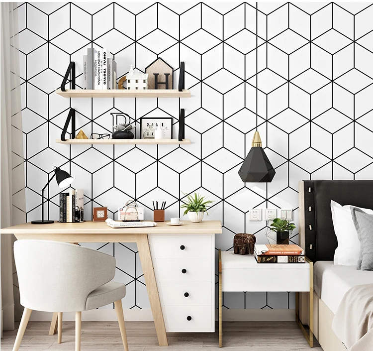 Скандинавские геометрические латтические 3D обои Черные виниловые белые сетки обои рулон для гостиной фон росписи Papel Pintado