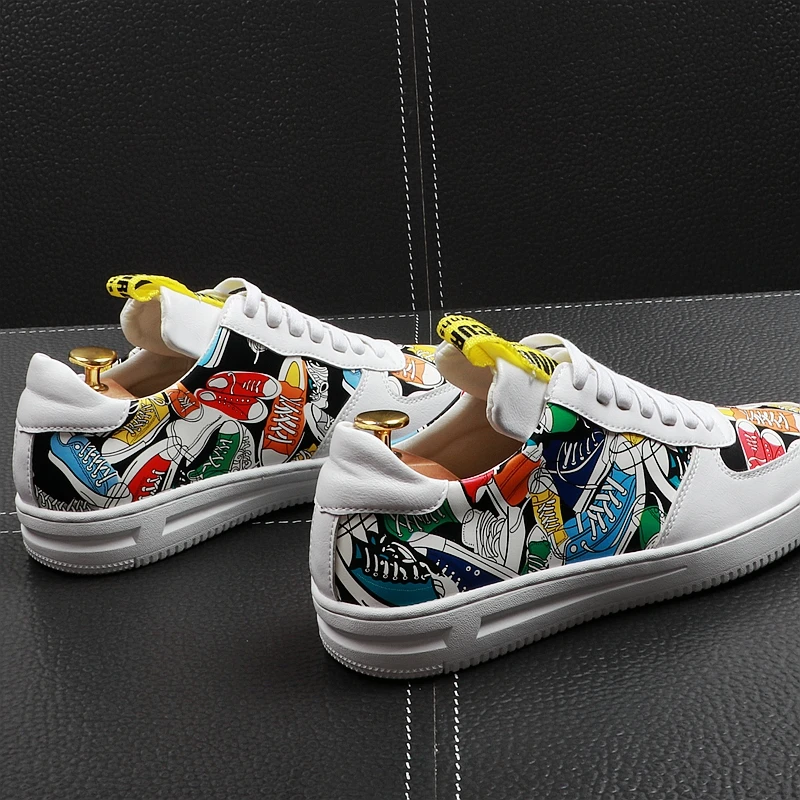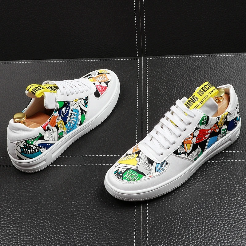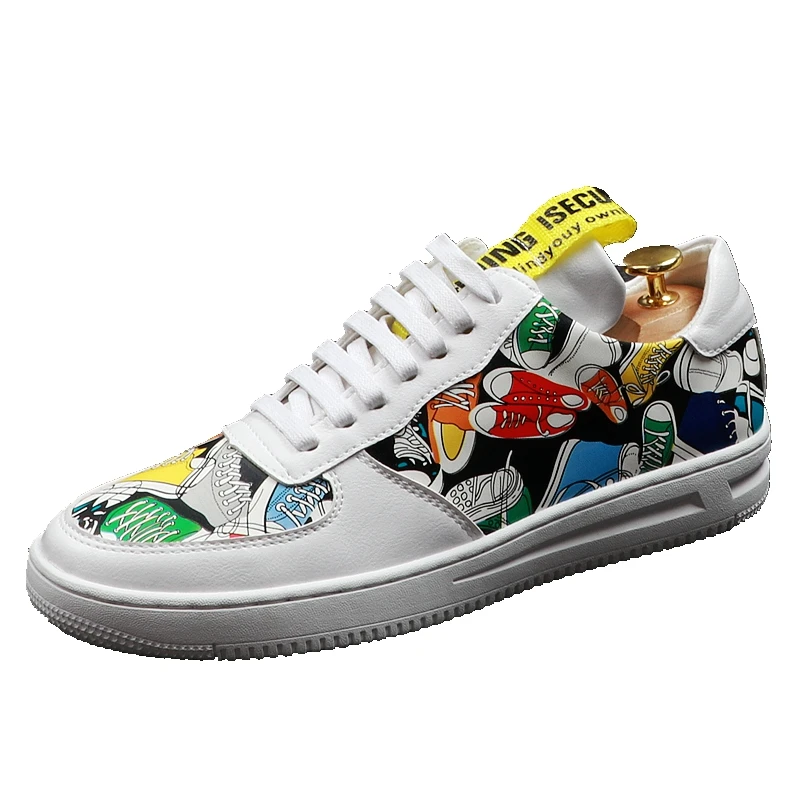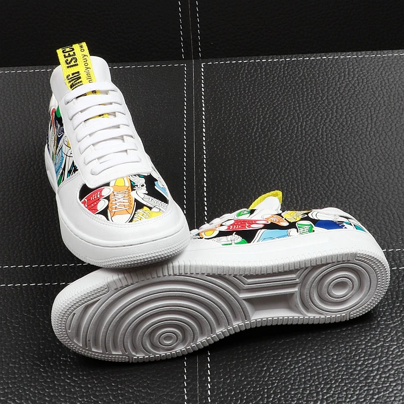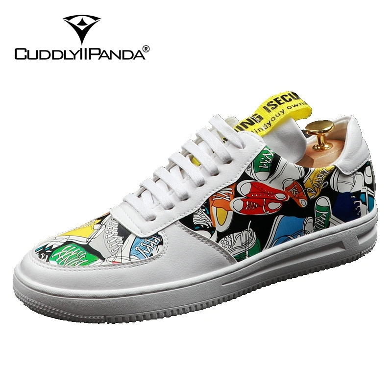 Мужские кроссовки на шнуровке cuddlyipanda, белые кроссовки из вулканизированной кожи в стиле хип-хоп, с принтом, весна-осень