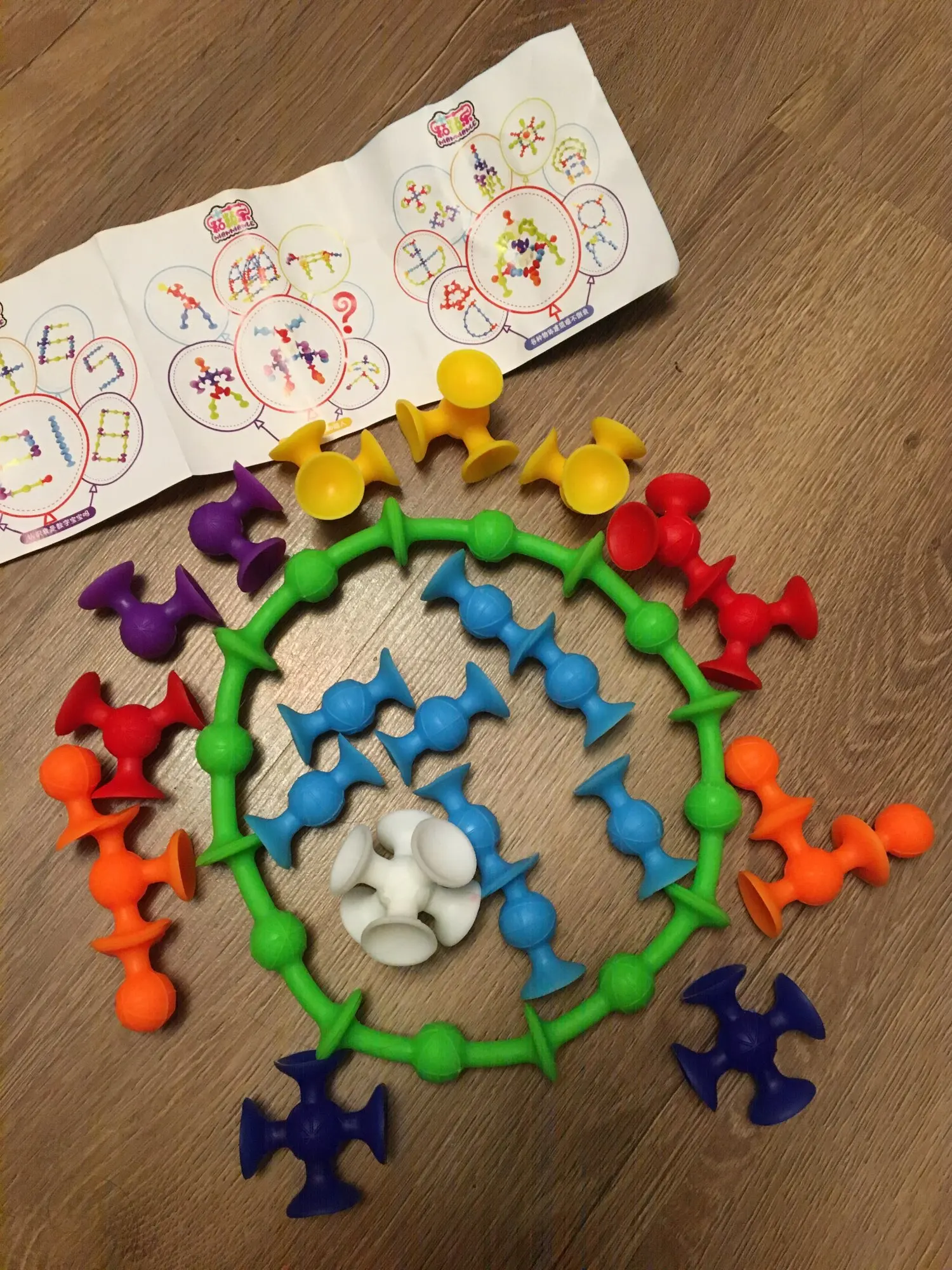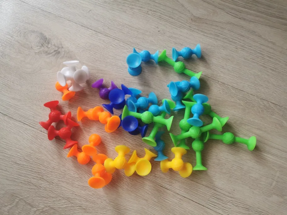 Силиконовые присоски соответствуют описанию продавца. В комплект входит 33 предмета различных форм и цветов. Присоски хорошо прилипают к гладким поверхностям, их легко создавать. Они не подходят для самых маленьких детей-самые маленькие присоска можно проглотить. Быстрая доставка. Доставка в Польшу в течение 35 дней. Я настоятельно рекомендую товар и продавцу!