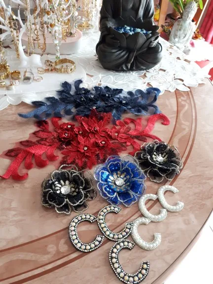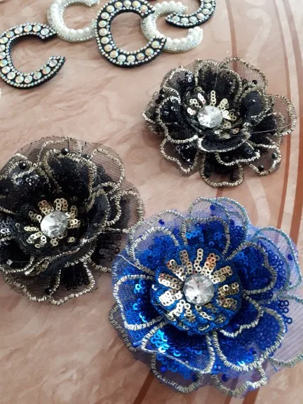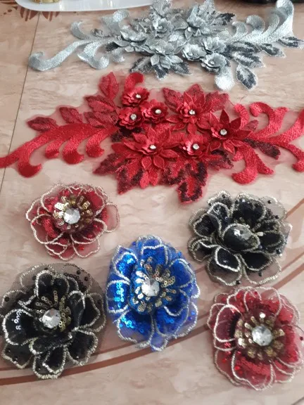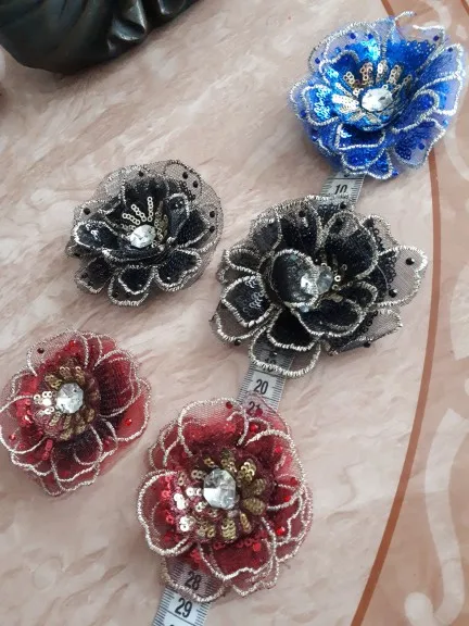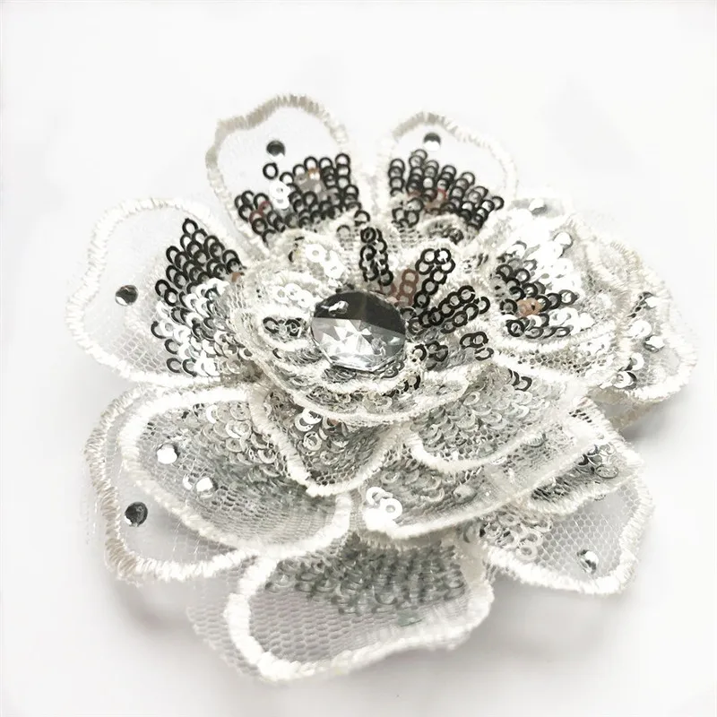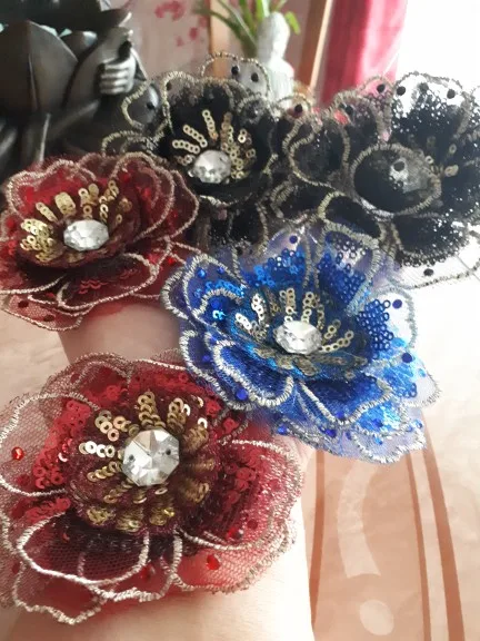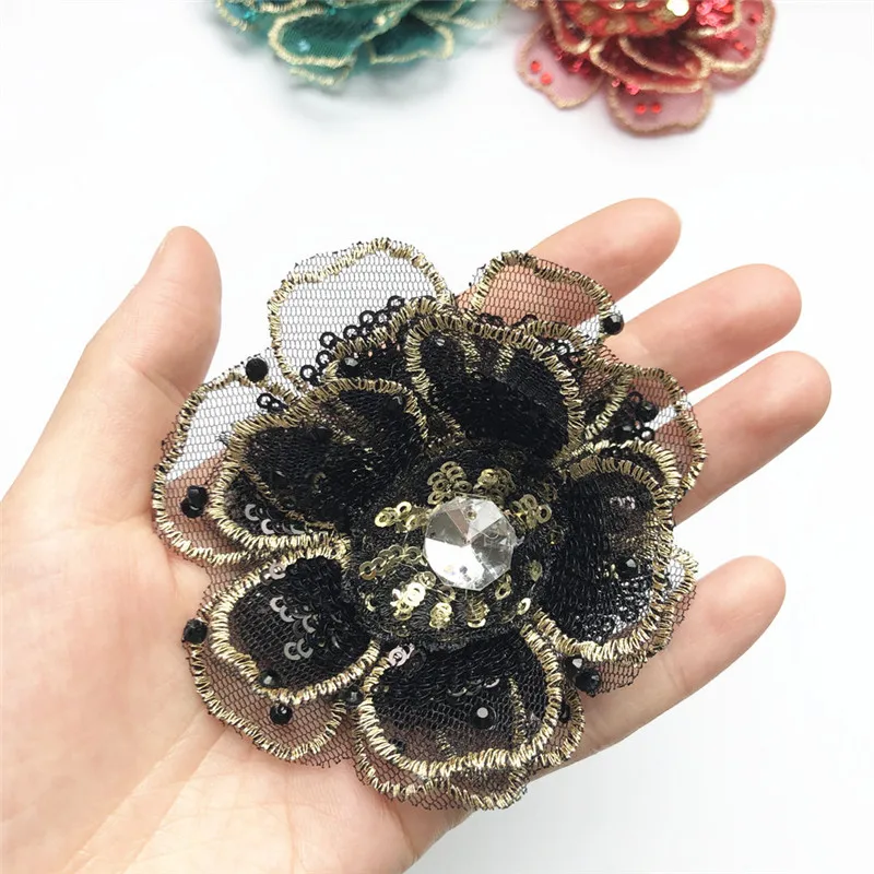 Вышитые золотые и серебряные блестки 8 см, многослойная сетчатая нашивка с 3D цветочной головкой для свадебных аппликаций, платья сделай сам, красного, синего, черного цвета