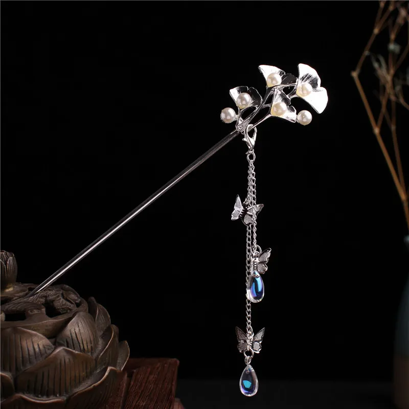 Винтажная Китайская Этническая бабочка, палочки для волос, цветок, подвеска, кисточка для женщин, Свадебная вечеринка, украшения для волос, инструменты