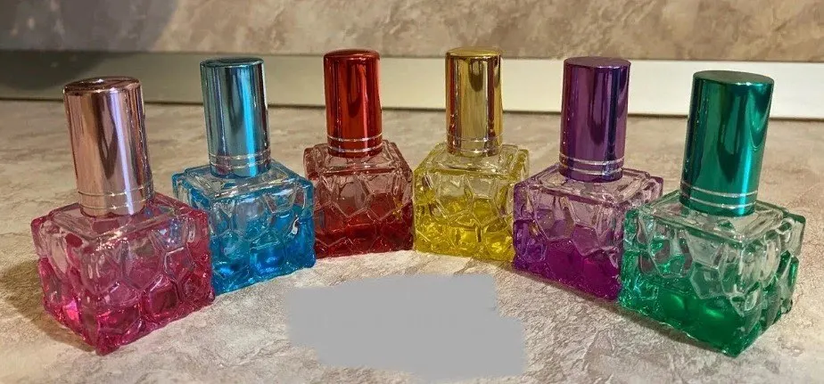 10 шт.лот, 10 мл, цветные квадратные стеклянные флаконы для духов, многоразовый образец, портативный пустой распылитель, мини дорожные флаконы для духов