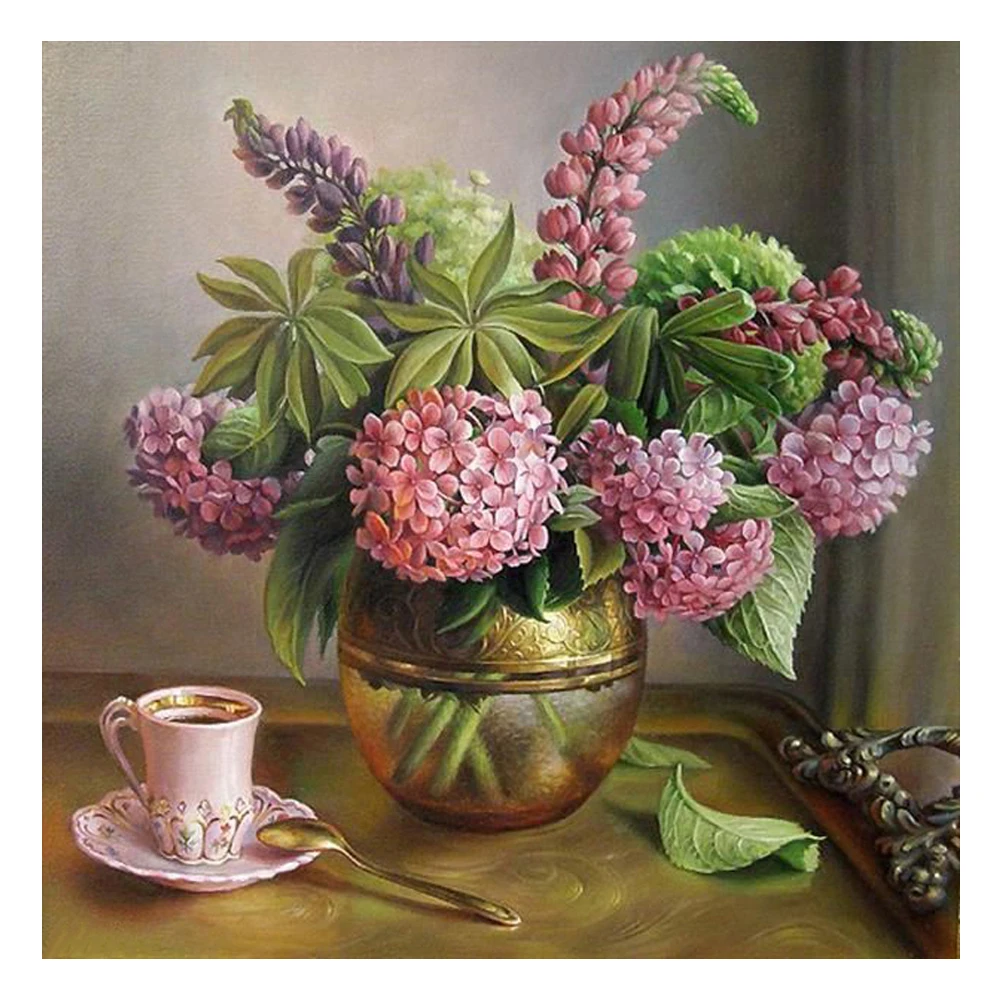 Алмазная вышивка 5d DIY Алмазная картина чайный набор розовые сиреневые цветы вышитые Стразы наборы крестиков R773