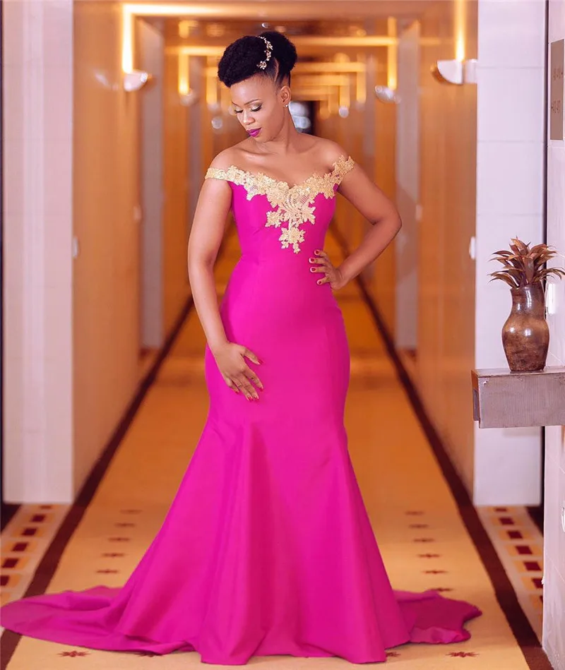 Аппликация кружева африканские платья для выпускного вечера 2022 черного цвета для девочек платье цвета фуксии, комплект вечерней одежды размера плюс с русалочкой Vestido de fiesta de boda