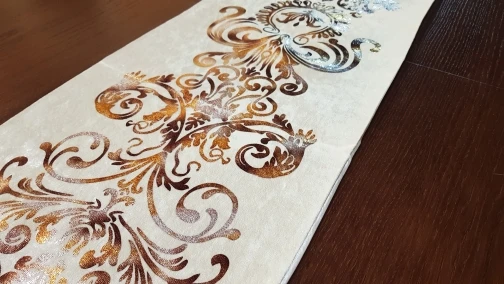Очень хороший стол. Ткань, как видно на фотографиях. Он изогнут, так что у него есть немного тела. Меры, которые описаны. Отлично смотрится на столе. Это было очень хорошо вовремя. Очень доволен продавцом.