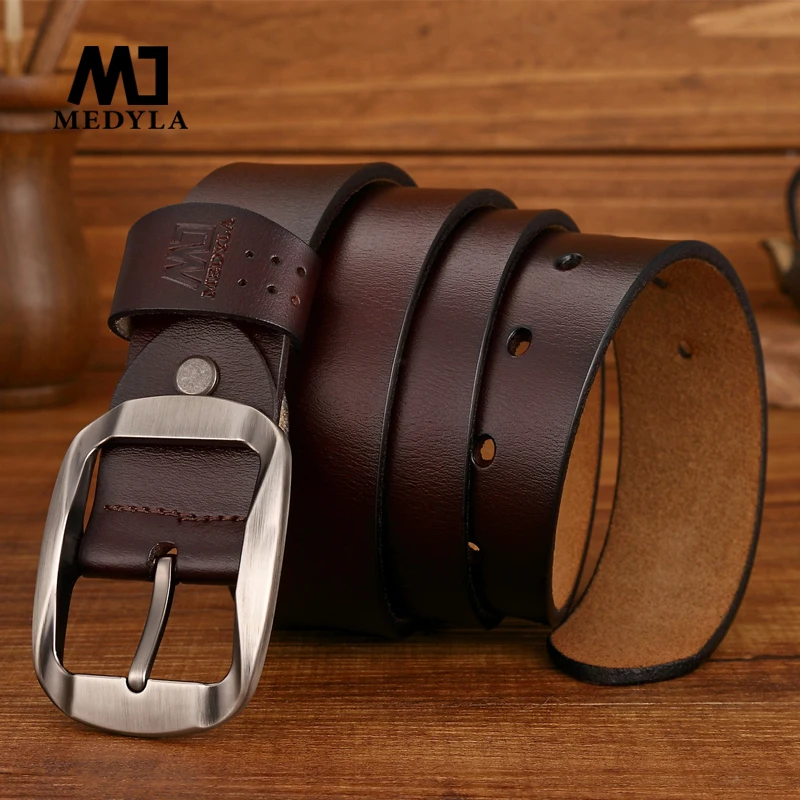 Мужские классические ремни MEDYLA, ремни из коровьей кожи хорошего ...