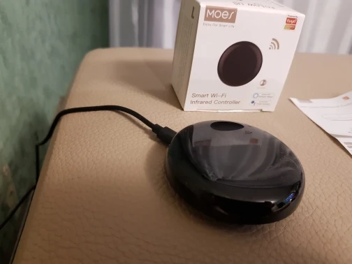 Доставка за две с половиной недели, упаковка так себе, в пересылке коробка помялась но товар не пострадал. В комплекте само устройство и микро USB провод к нему. А также инструкция на английском. Подключение к Smart life (tuya) без проблем. Пульты от тв и dvd прописались из списка, тв приставка и ИК пульт от освещения методом обучения кнопок. Всё устройства управляются нормально, единственное не очень хорошо приставка D-color, но там причина в её низкой чувствительности (своим пультом она тоже не со всех мест ловит), методом подбора размещения решилась и эта проблема. ИК работает, сценарии выполняются покупкой доволен