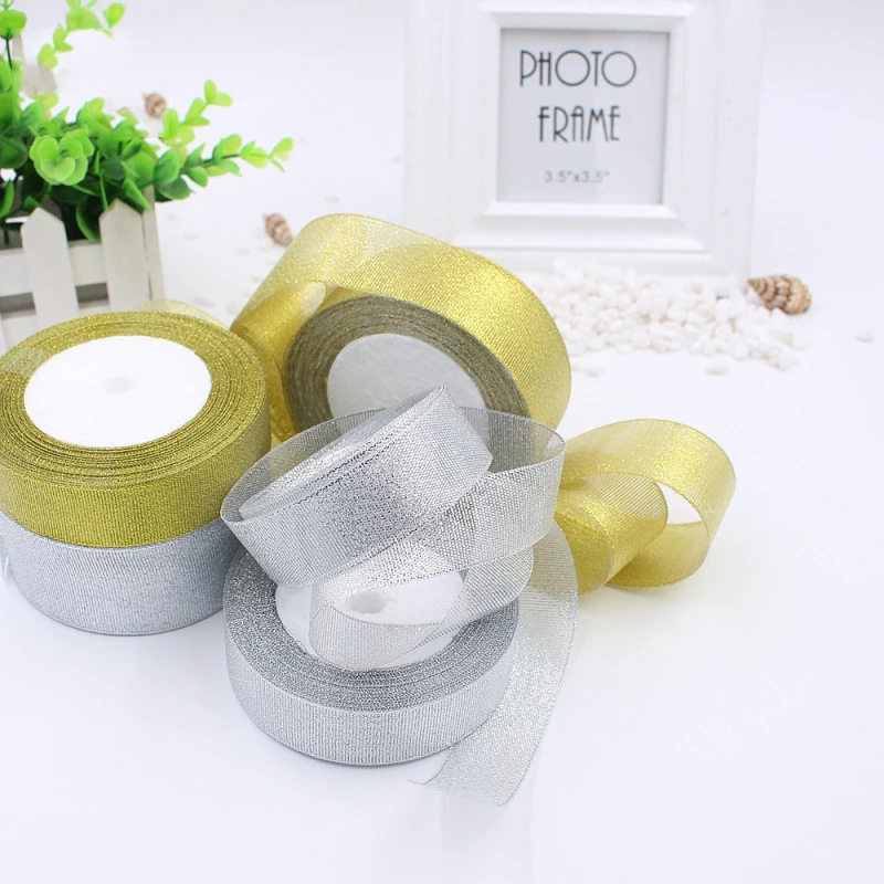 25 ярдов золотистая и серебристая атласная лента, корсажная лента, сделай сам, бант, крафтовый декор для подарочной упаковки, Свадебный декор, товары для скрапбукинга