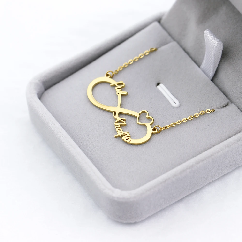 Ожерелье с двумя именами, ручная работа, ожерелье с именем бесконеч...