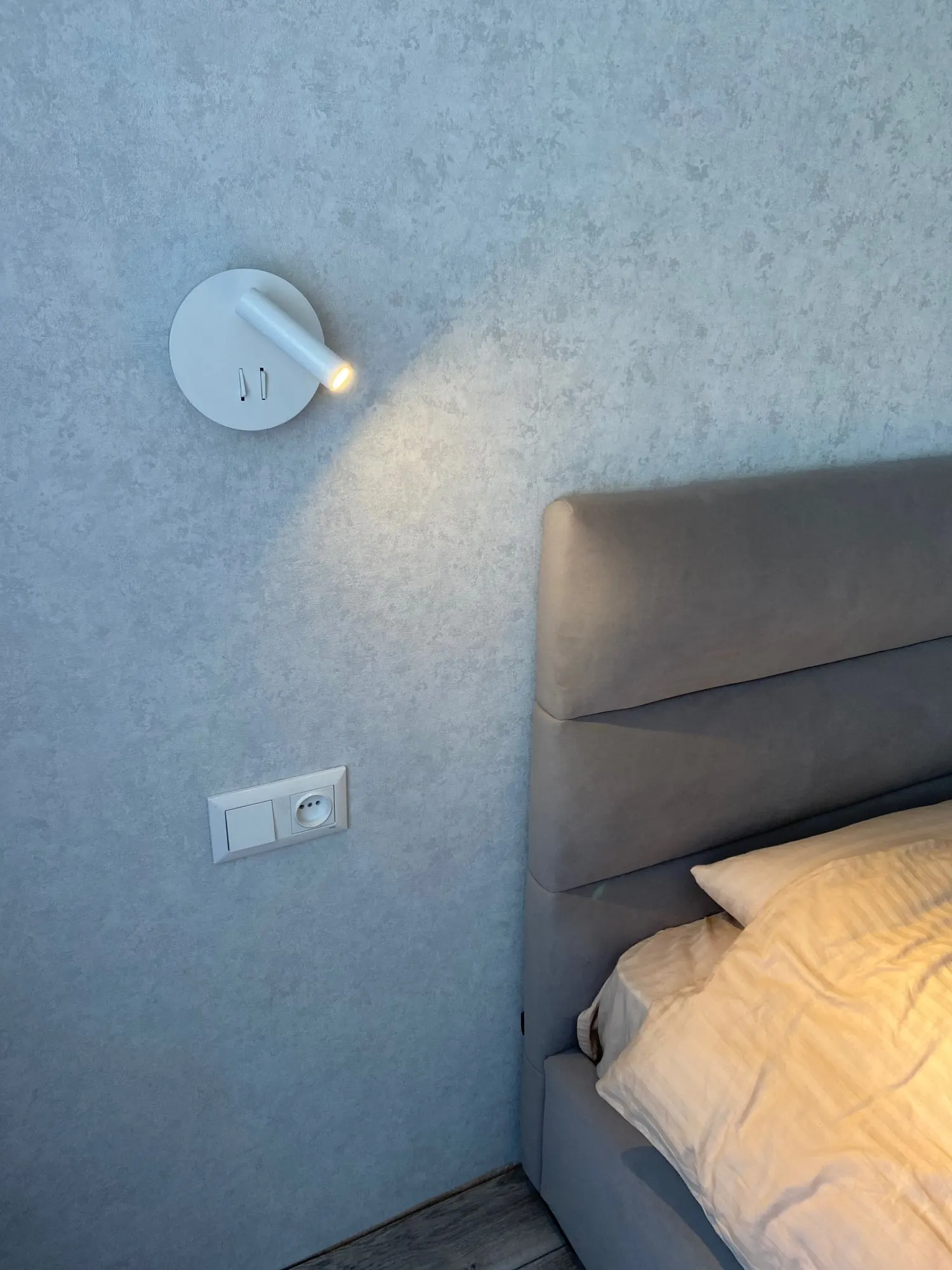 Доставили очень быстро. Ровно 10 дней с момента оформления заказа до получения в Петербурге. Лампы качественные. Клавиши для включения надо жать вниз. Перевернуть выключатель дело трёх минут и уже клавиши включают свет нажатием вверх. Расстроило только то, что заказывал два светильника на две стороны кровати с теплым светом. А пришёл один с теплым и один с холодным :( Причем на светильнике с холодным светом табличка с надписью Тёплый. Очевидно, вина производителя. Но теперь у меня два светильника с разным светом. А так все отлично. На фото кабель к светильнику. Это мой "колхоз". Ибо когда делал ремонт, то планировал только розетки и штробил стену только под них. Поэтому пришлось болгаркой сделать прорезь под кабель и запитать от розетки.. Ну бывает..
