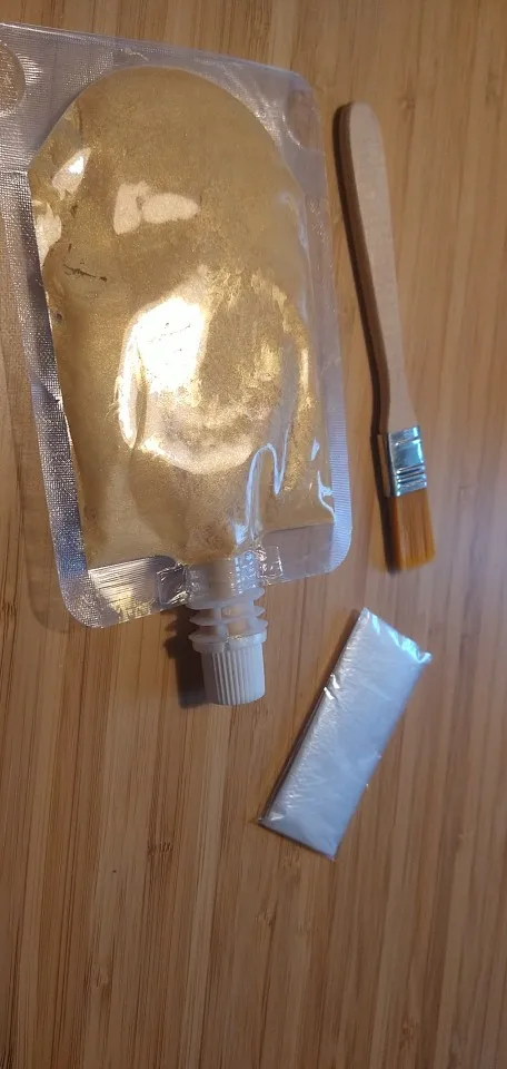 Посылка получена поврежденной, так как она хранится в полиэтиленовом пакете и объединена в одну упаковку с Жидкой Краской, а также упакована в полиэтиленовый пакет, который был поврежден во время транспортировки и большая часть краски была вытекла.