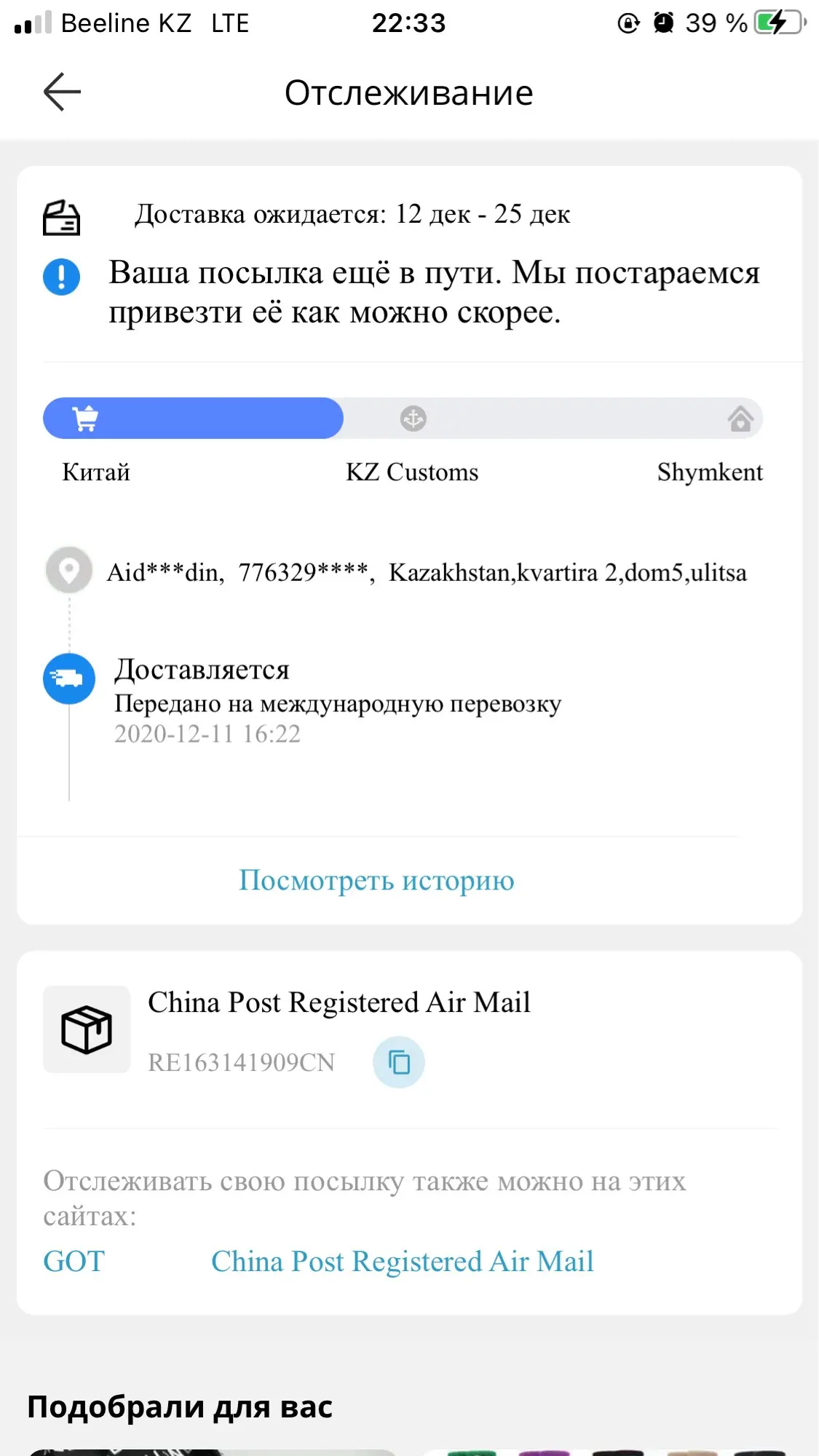 Страна: KZ Color: Black T-shirt Size: M Доставка: China Post Registered Air Mail 16.02.2021