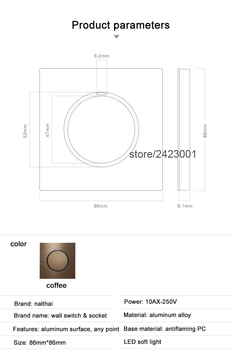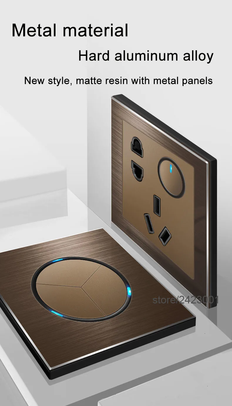 Розетка переключателя из алюминиевого сплава, 86 типов, 1, 2, 3, 4, 1, 2 канала