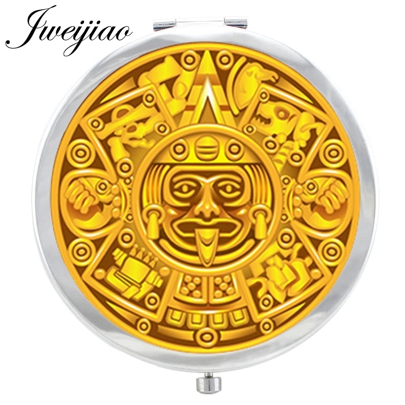 JWEIJIAO зеркало для макияжа с календарем Майя тоналпохуалли, стеклянный кабошон, круглое компактное карманное зеркало espejo