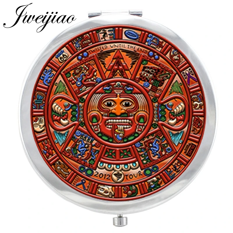Зеркало для макияжа JWEIJIAO с календарем Mayan, стеклянный кабошон Maya Tonalpohualli, складное круглое компактное карманное зеркало, зеркало