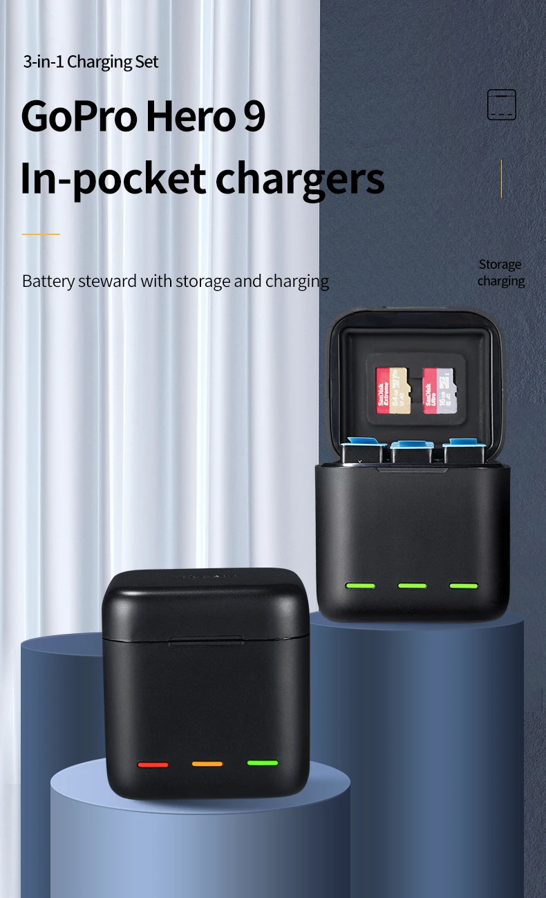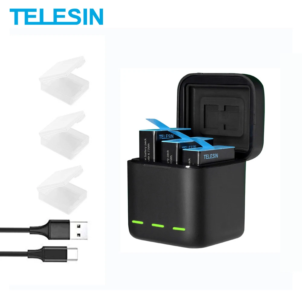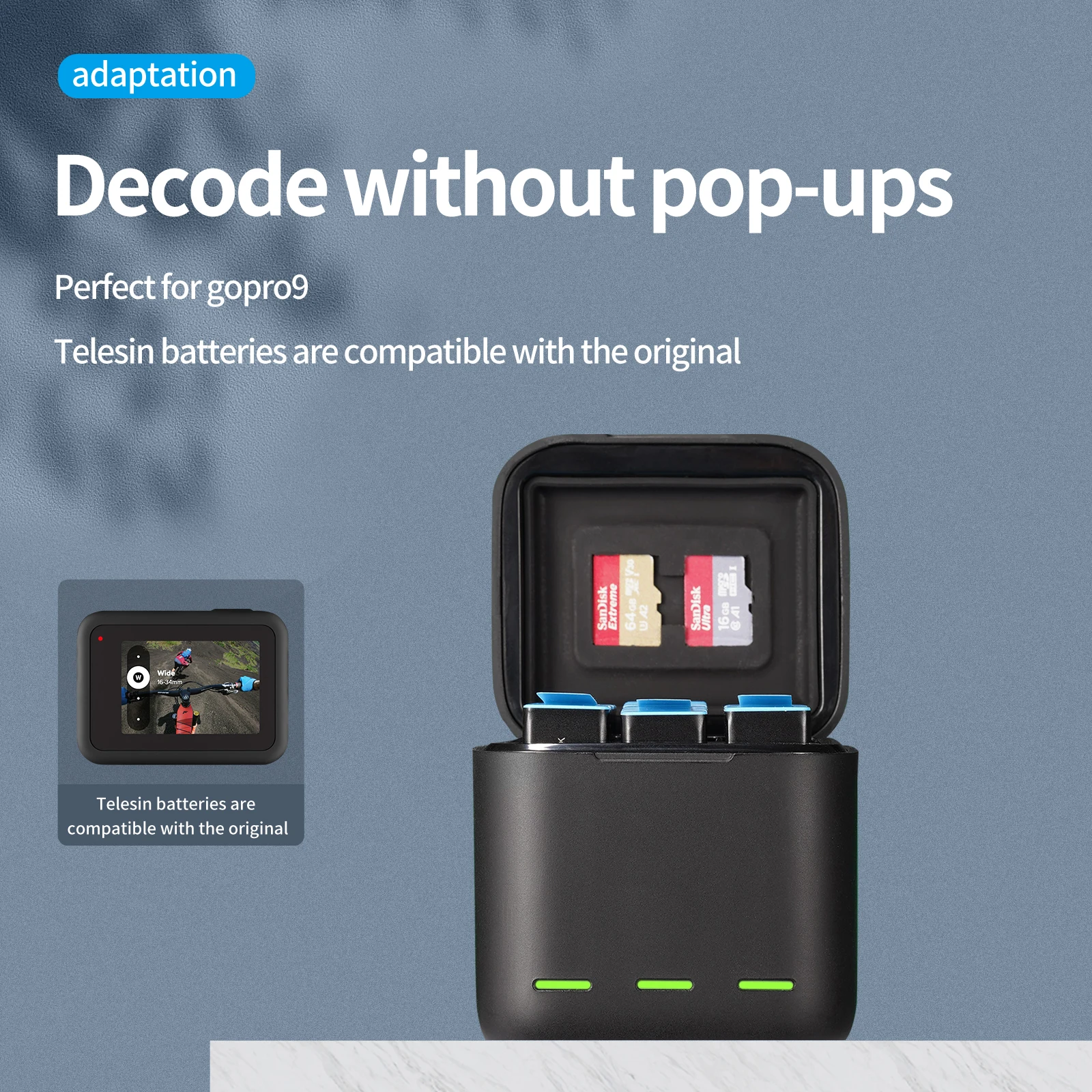 Зарядное устройство TELESIN 1750 мА ч, 3 слота, чехол для хранения TF-карт, светильник ка, аксессуары для камеры gopro hero 9 gopro9