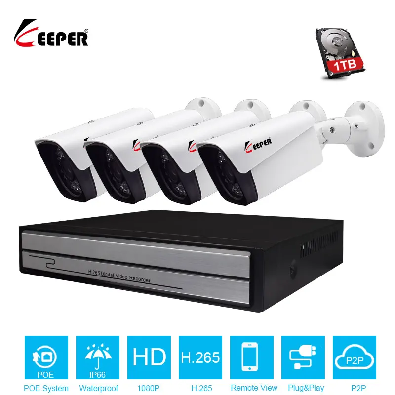 Система видеонаблюдения Keeper, 4 камеры 2 Мп, H.265, 1080P, HD, POE, NVR, 4 шт.