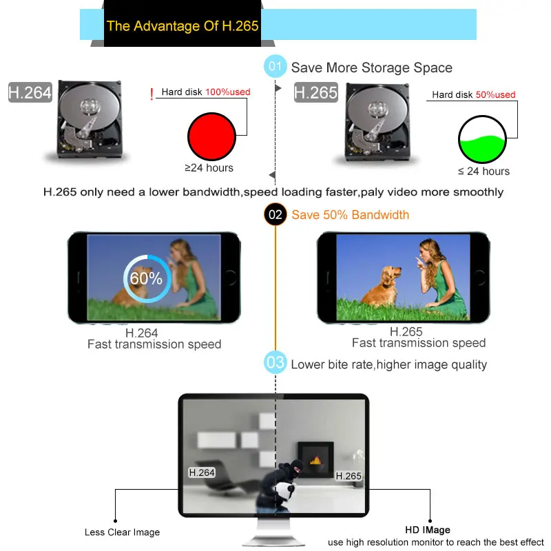 Сравнение 1080p с 720p.2MP (1920x1080P) с высоким разрешением позволяет просматривать четкие и сверхчеткие изображения с потоковой трансляцией видео в реальном времени. По сравнению с IP-камерами 1080p и 720p, это огромный шаг вперед для этой камеры 2 Мп, чтобы предложить видео высокой четкости
