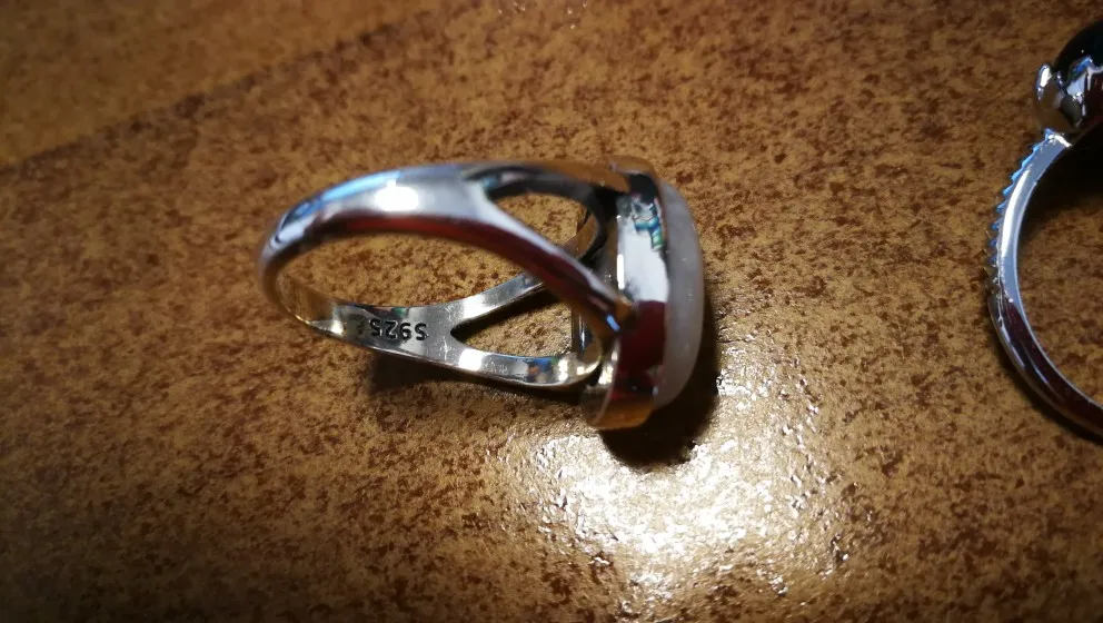 Кольцо, которое прислали мне, ничего общего с рекламой не имеет. Таких «лунных камней» на любом пляже валяются тонны. Если это серебро, вставлю в него нормальный камень, ибо этот всё равно приклеен, это видно на фото, клей торчит. Открыла посылку и аж прослезилась. Продавец обещал прислать хотя бы с одной искоркой, фигу. Нехороший человек :))
