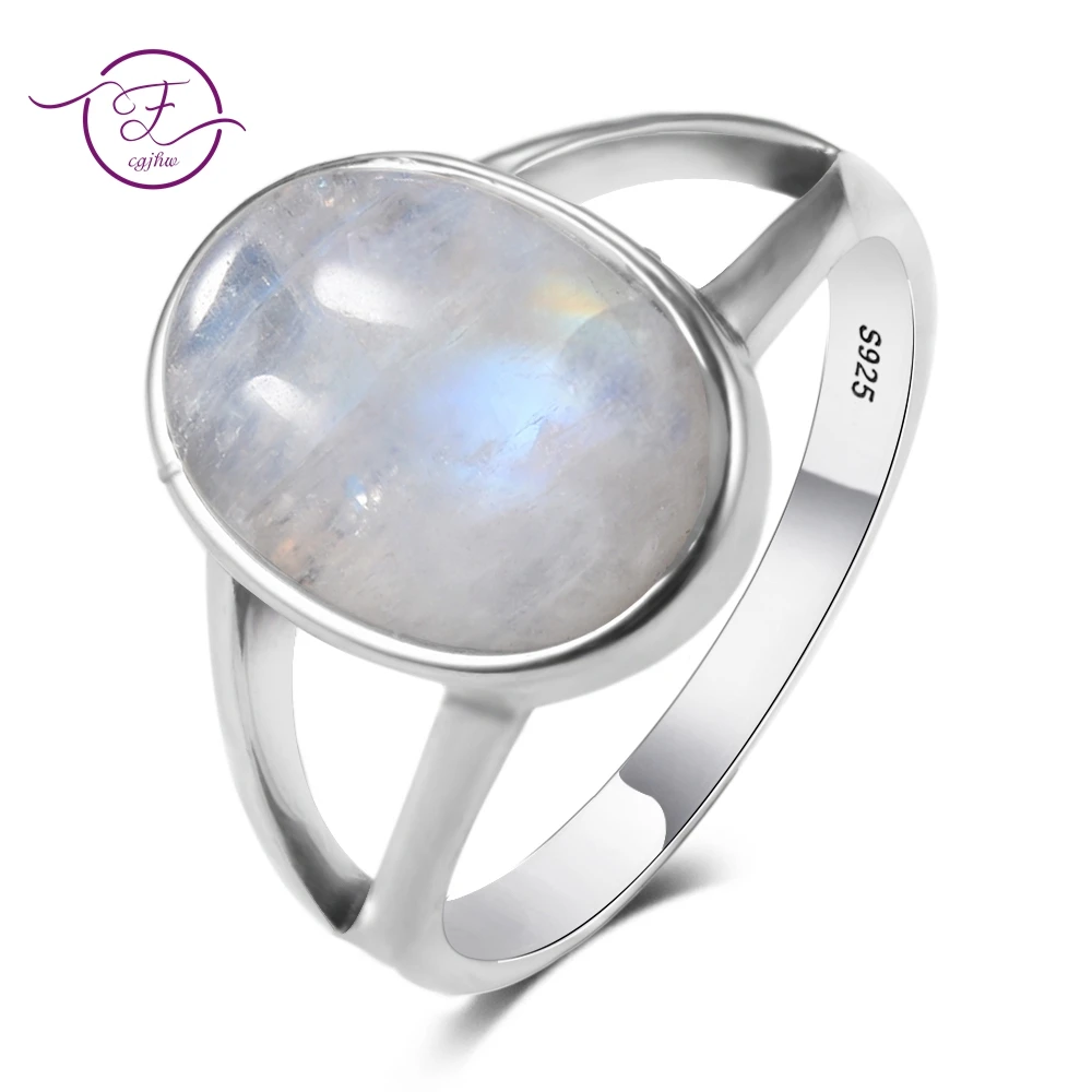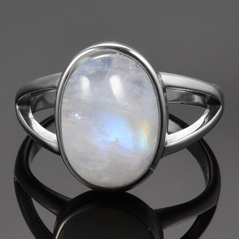 Кольцо женское из серебра 925 пробы, с радужным лунным камнем, 10x14 мм