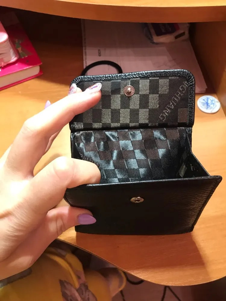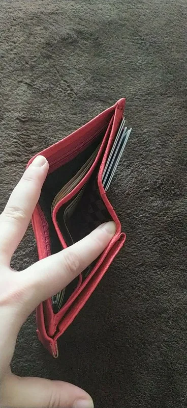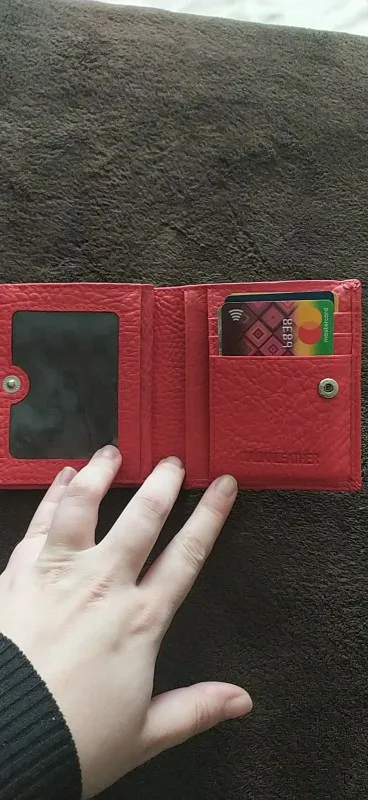 Хороший кошелек. Кажется очень маленьким, но купюры все входят и для мелочи достаточно места. Конечно для документов или ещё чего-то, что мы привыкли в кошельке носить места нет. Кошелёк только для денег, ещё 3 карты вошли.